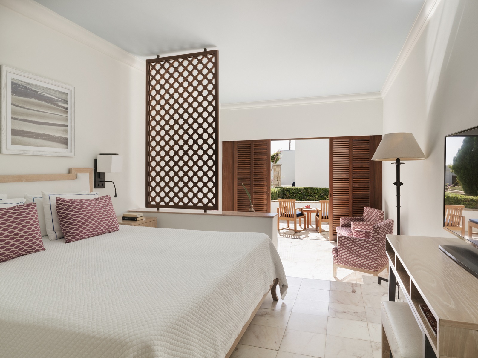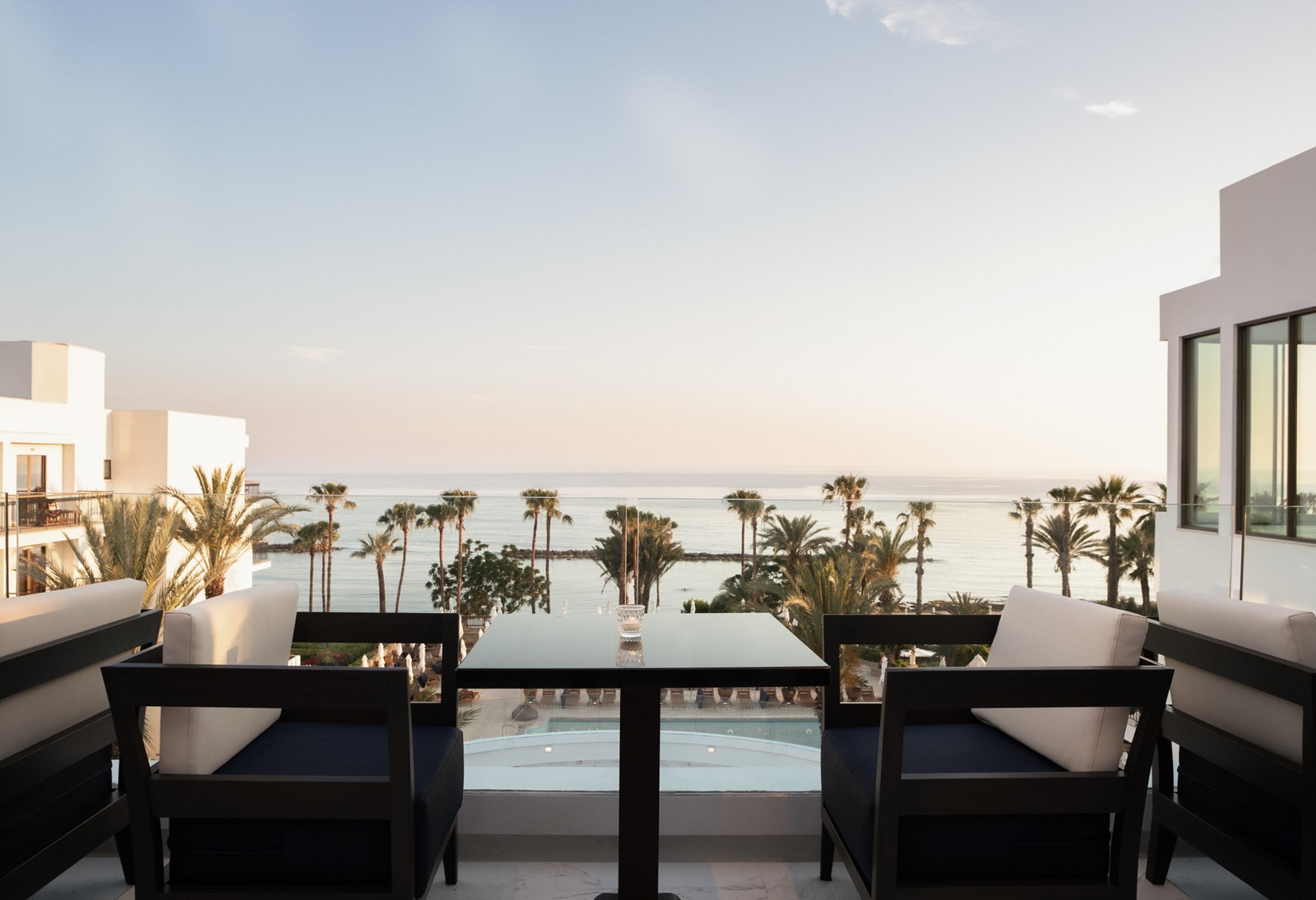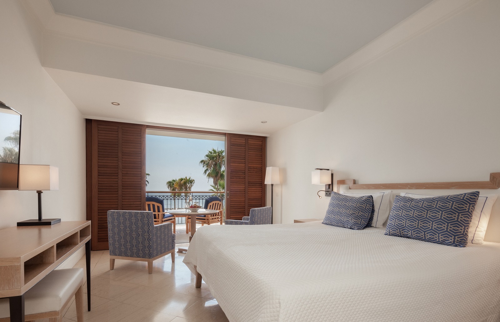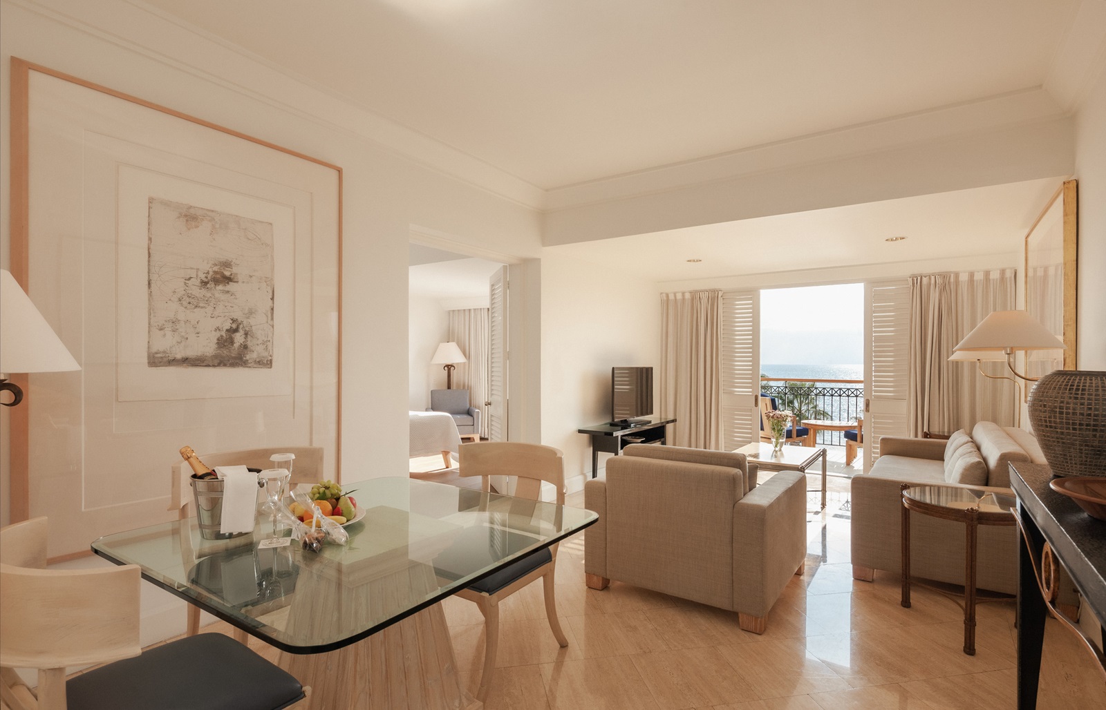 suites supérieures (55 m²) avec salon et chambre à coucher séparée, balcon et vue mer