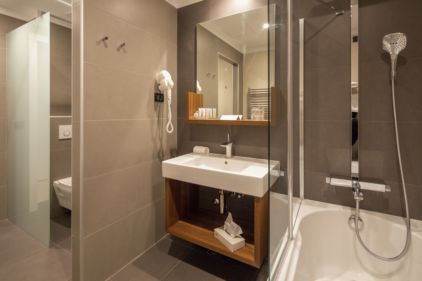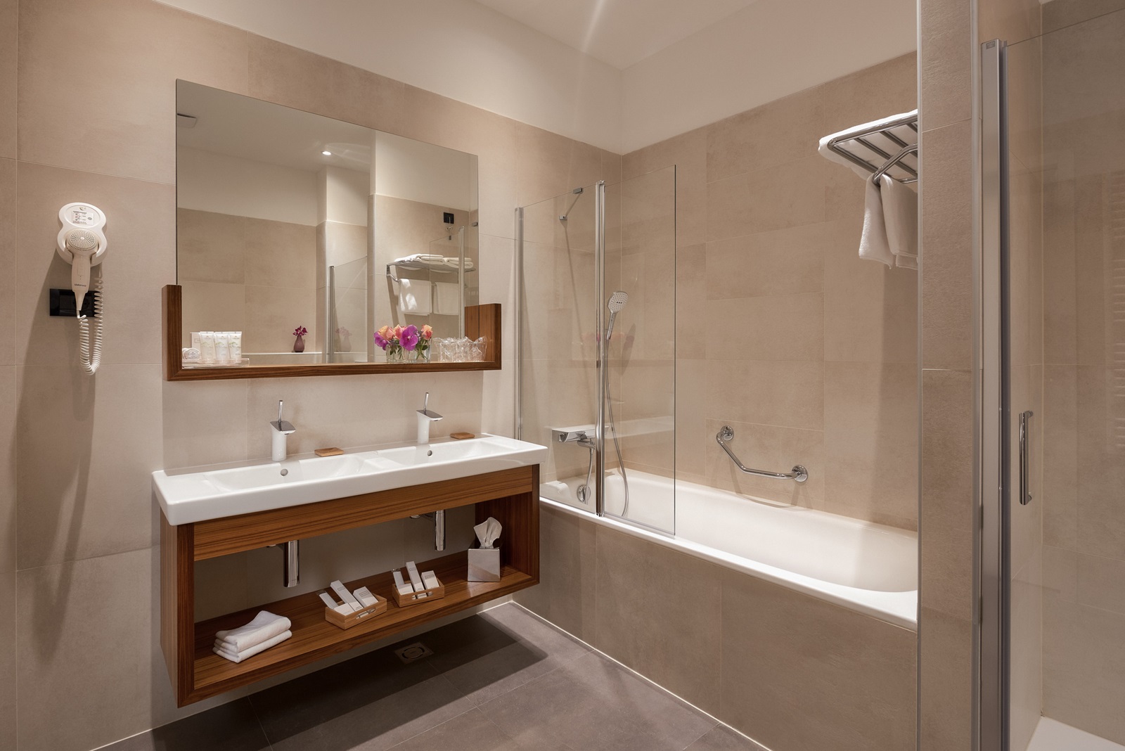 toutes les chambres disposent d 'un bain ou douche, sèche-cheveux, climatisation, TV à écran plat, wifi, percolateur à café et é thé, coffre-fort et minibar (€)