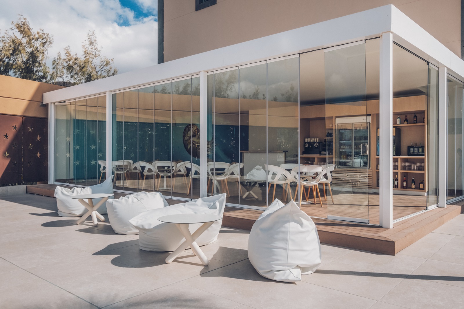chambres (32 m²) avec accès direct à une piscine commune et vue mer latérale