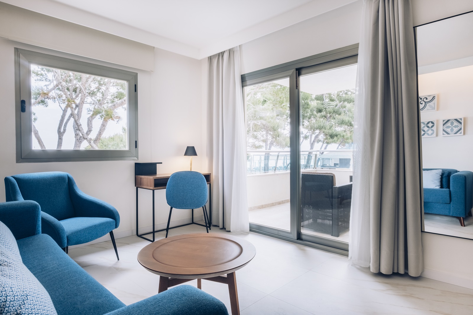 chambres familiales avec salon et chambre à coucher séparée, disponibles avec vue piscine ou vue mer