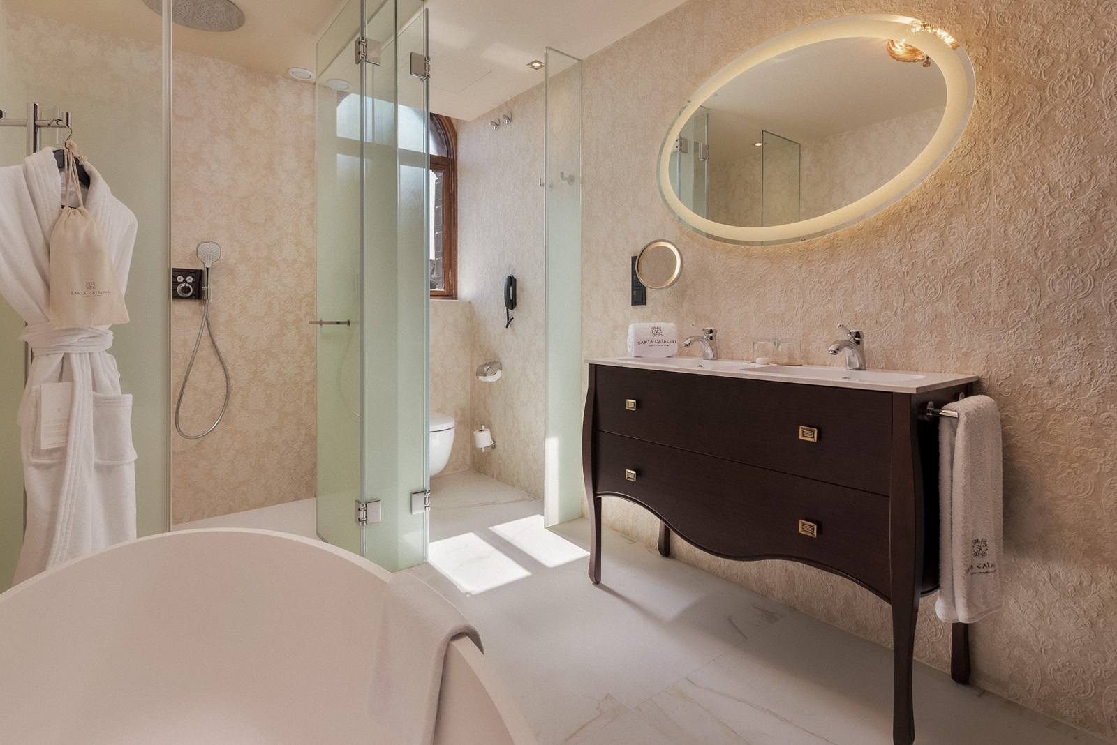 toutes les chambres disposent d'une douche à effet pluie, sèche-cheveux, sorties de bain et pantoufles, wifi, climatisation, téléphone, smart TV, percolateur à café et thé, minibar (€), balcon ou terrasse