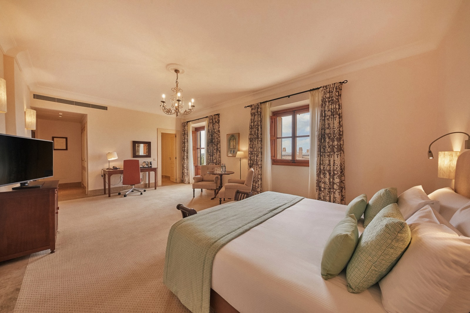 Niché dans l'arrière-pays idyllique de Majorque, Zoëtry Mallorca vous invite à (re)découvrir l'art de vivre. Autour de la tour historique Gran Cristiana et de sa chapelle néogothique du XIVe siècle s'étend un domaine luxueux où le temps ralentit et où le bien-être est au cœur de tout. Les 90 chambres et suites élégamment aménagées baignent dans le calme, entourées de verdure et de tons chauds et naturels. Le resort s'articule autour de quatre piliers : patrimoine, bien-être, nature et gastronomie, comme une boussole qui invite les clients à se reconnecter avec eux-mêmes et leur environnement. Détendez-vous au bord des piscines extérieures d'un bleu foncé, dont l'une est réservée aux adultes, ou profitez de la piscine intérieure thermale. Si vous recherchez un repos actif, vous êtes également au bon endroit : quatre magnifiques terrains de golf vous attendent à proximité, offrant un cadre exceptionnel pour perfectionner votre swing.