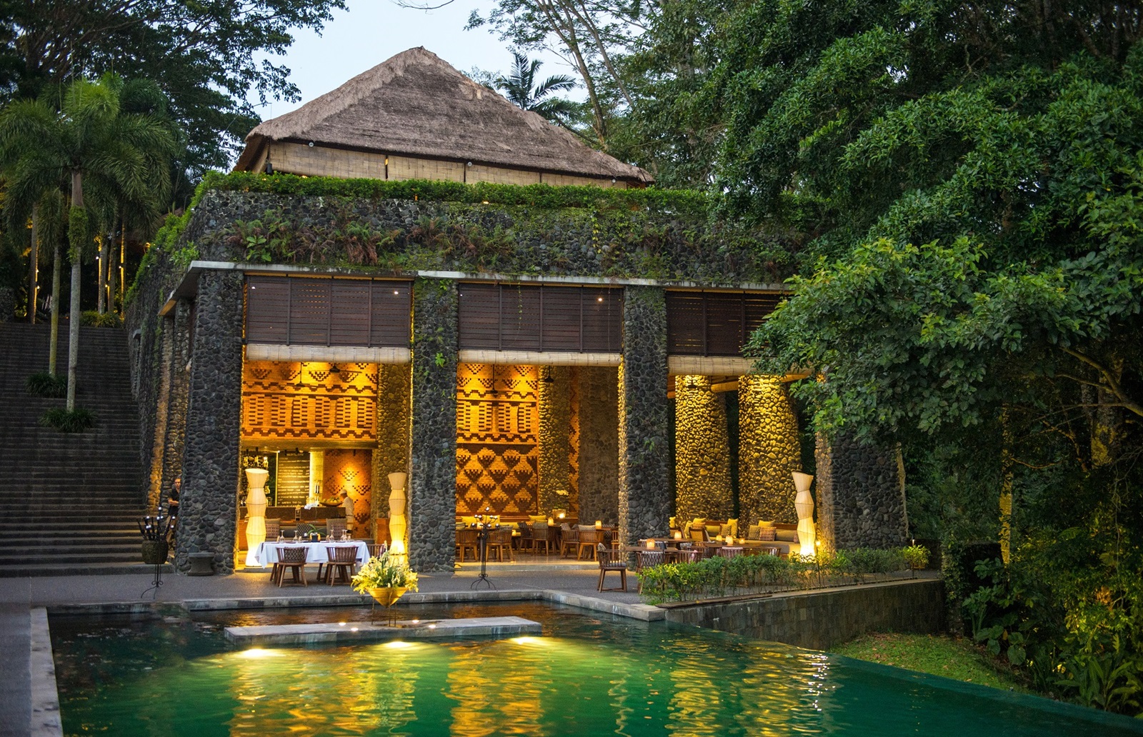 Cet hôtel se trouve à 15 minutes d'Ubud, qui est le centre de l'art et de la culture balinaise depuis plus d'un siècle. Il est conçu comme un village perché balinais moderne, avec une vue imprenable sur la mythique rivière Ayung. Les chambres et les villas surplombent la vallée et interagissent magnifiquement avec l'environnement tropical. De plus, la piscine à débordement vert émeraude est l'une des plus romantiques de Bali. Selon Travel & Leisure Magazine, elle fait même partie des 50 plus belles du monde.