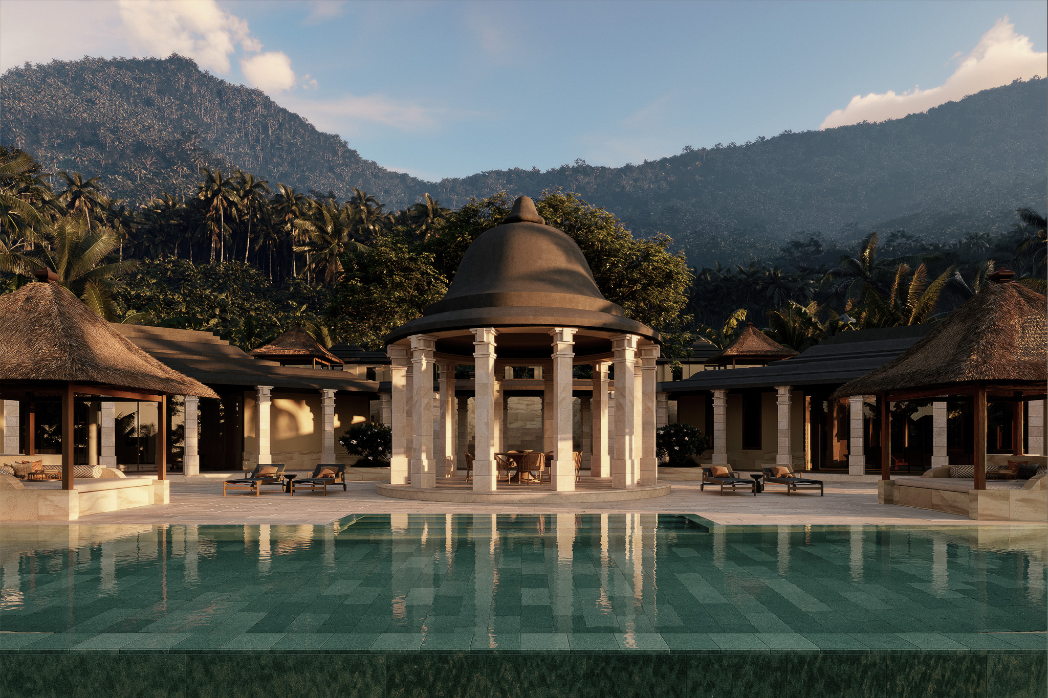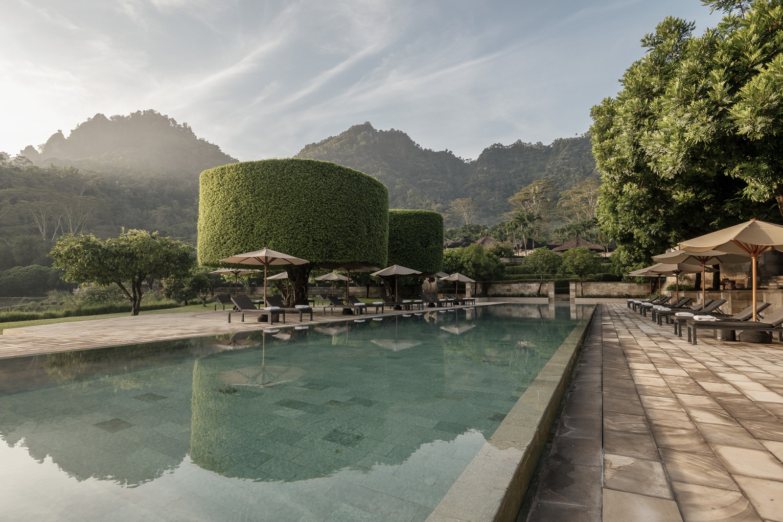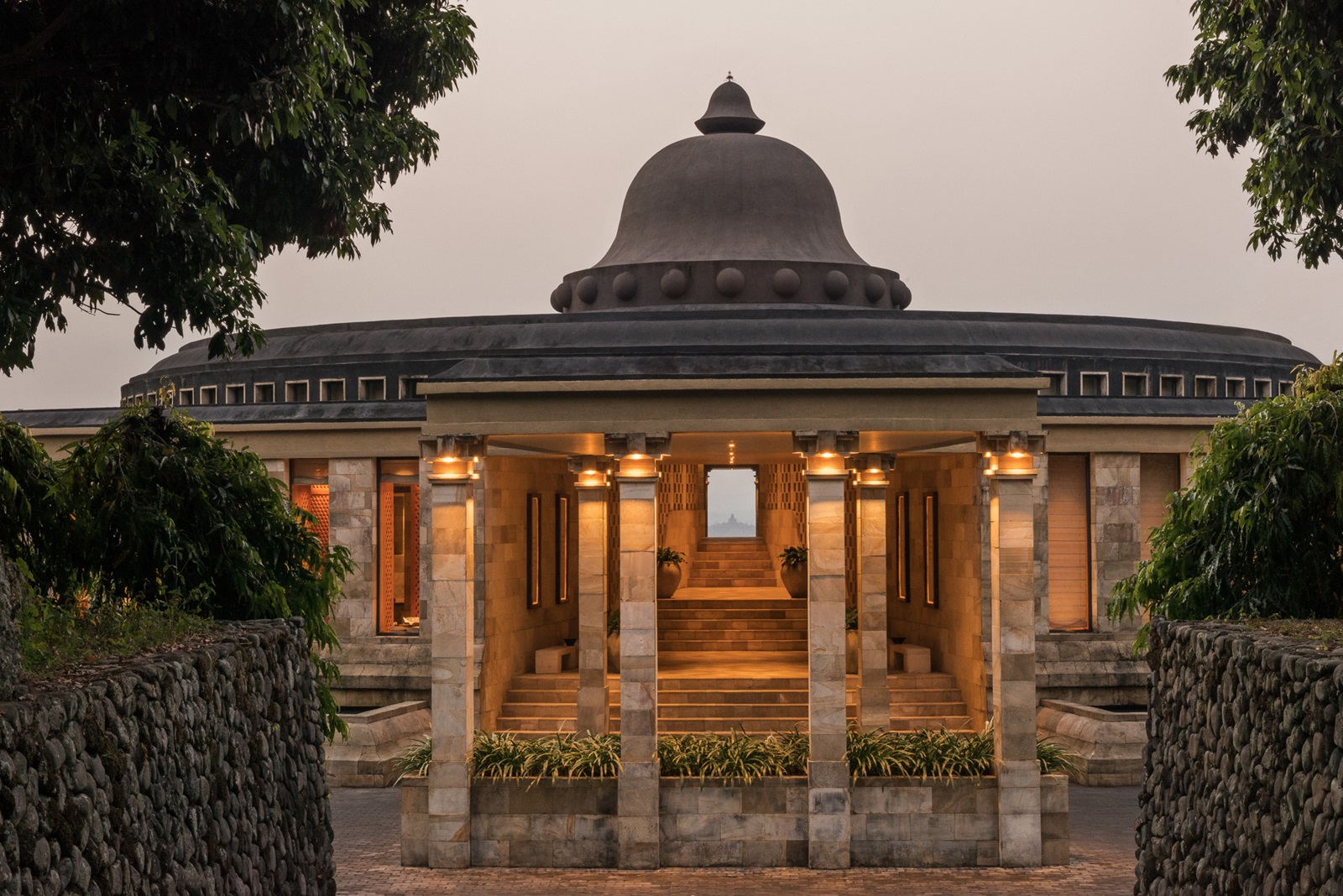 Le luxueux hôtel Amanjiwo, un complexe hôtelier Aman, est situé dans les collines du centre de Java, en Indonésie. Il surplombe le monument bouddhiste Borobudur, l'un des sites touristiques les plus célèbres d'Indonésie. L'architecture de l'hôtel s'inspire également en grande partie de ce temple magique. Tout comme le Borobudur, l'Amanjiwo compte cinq étages. Le hall et le restaurant se trouvent au dernier étage, d'où vous pourrez profiter d'une vue imprenable sur le monument. En tant que client de l'hôtel, vous bénéficierez également du privilège unique de visiter le temple au lever du soleil, lorsque le site est le plus beau.