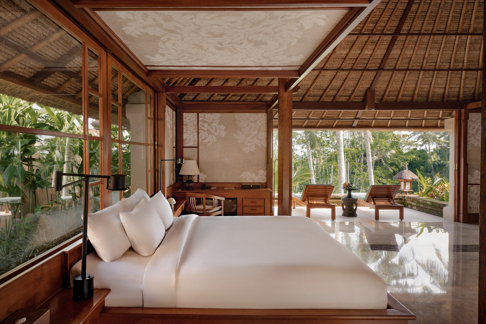 À proximité d’Ubud, l’hôtel de luxe Amandari est paisiblement perché sur une crête, s’intégrant parfaitement à la nature environnante. Conçu comme un village traditionnel balinais, il offre une vue spectaculaire sur la vallée de l’Ayung. Vous pouvez choisir parmi plusieurs types de suites, chacune offrant une expérience différente. Toutes les suites disposent d’un sol en marbre, d’une baignoire, d’un jardin clos et de portes-fenêtres en verre offrant une vue dégagée sur les environs. L’hôtel propose également un large éventail d’excursions culturelles et sportives, telles que des randonnées, des sorties dans la région de Kintamani et des balades en VTT à travers les rizières.