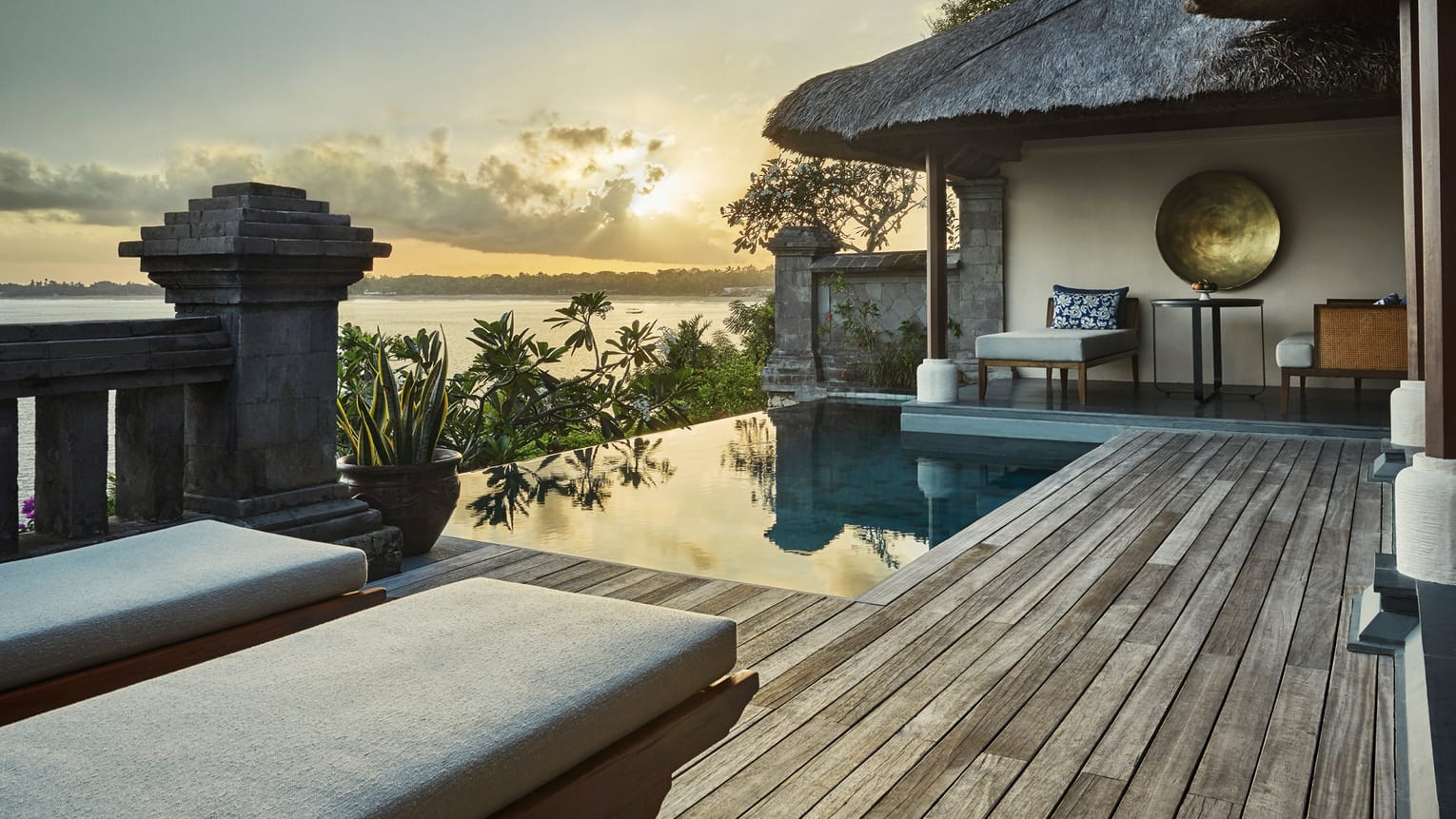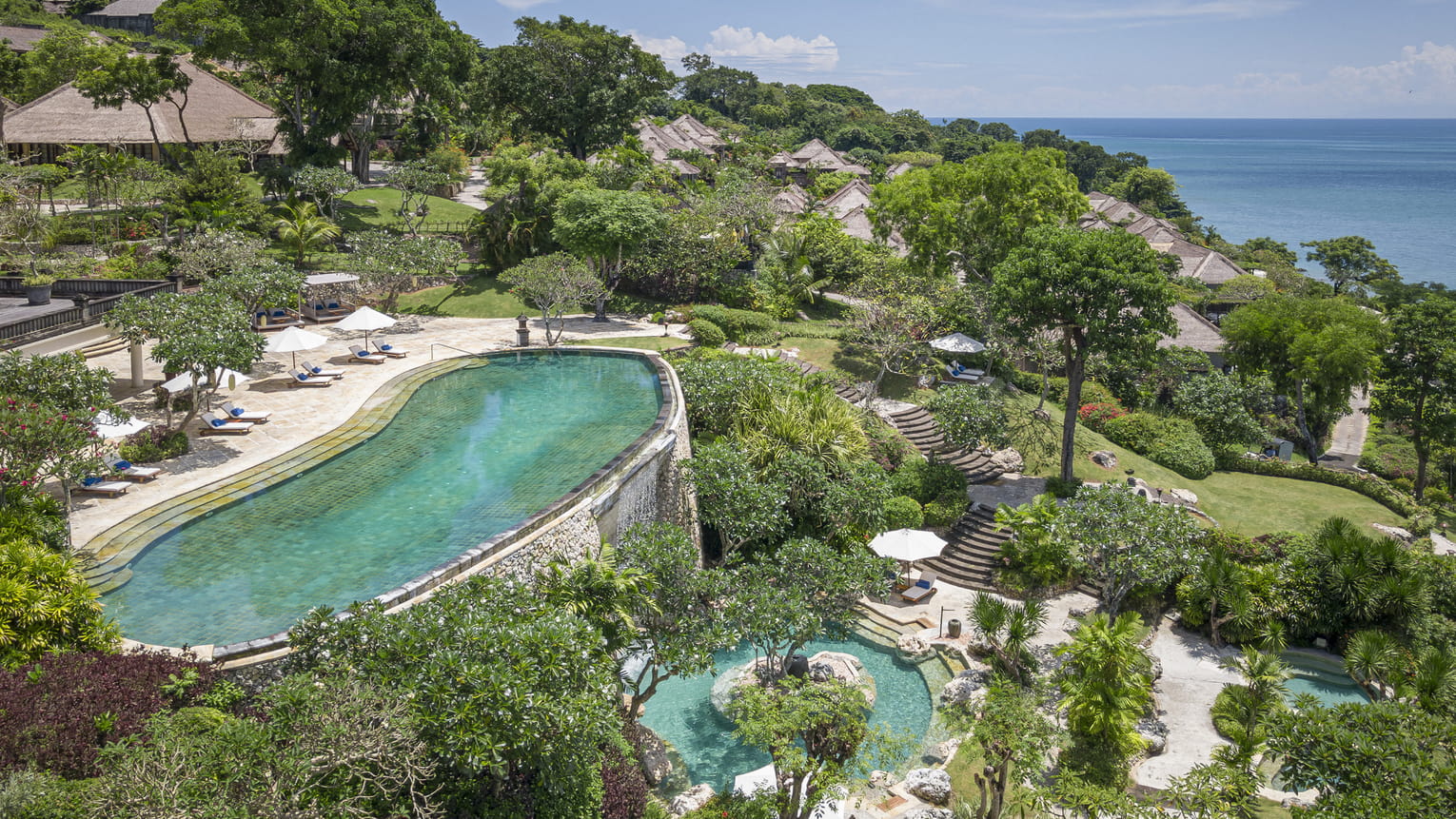 Ce Four Seasons est abrité contre une colline dans une baie tranquille avec vue sur l'océan bleu azur. Calme, bien-être et gastronomie sont ici les maîtres mots. Le complexe se compose de villas spacieuses avec piscines privées, regroupées comme un village balinais traditionnel. De plus, il dispose d'un centre de bien-être entièrement rénové de pas moins de 2 000 m² avec une gamme de soins esthétiques, thérapies, massages, gommages et enveloppements corporels. La cuisine est également excellente. Le restaurant Sundara est même l'un des restaurants les plus branchés de Bali.