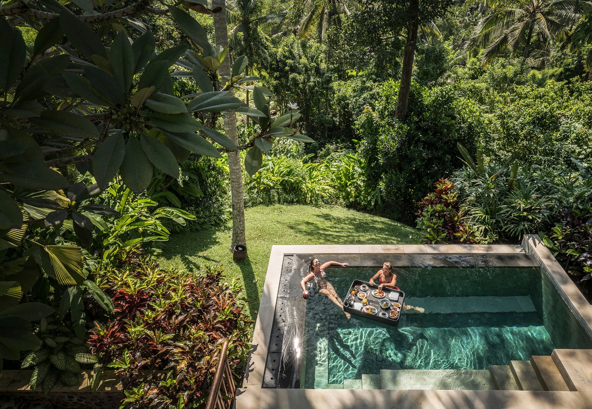 différentes villas possibles avec plunge pool ou piscine privée : villa 1 chambre à coucher (350 m²) avec vue jardin, Villa River Front (340 m²) avec vue rivière et jardin, Villa Sayan (480 m²) avec vue sur la vallée de Sayan, villa 2 chambres à coucher (760 m²) avec 2 salles de bains et vue jardin, River View 2 bedroom villa (1320 m²) avec vue sur la rivière et les rizières et Royal Villa (2125 m²) avec 3 chambres à coucher et 3 salles de bains