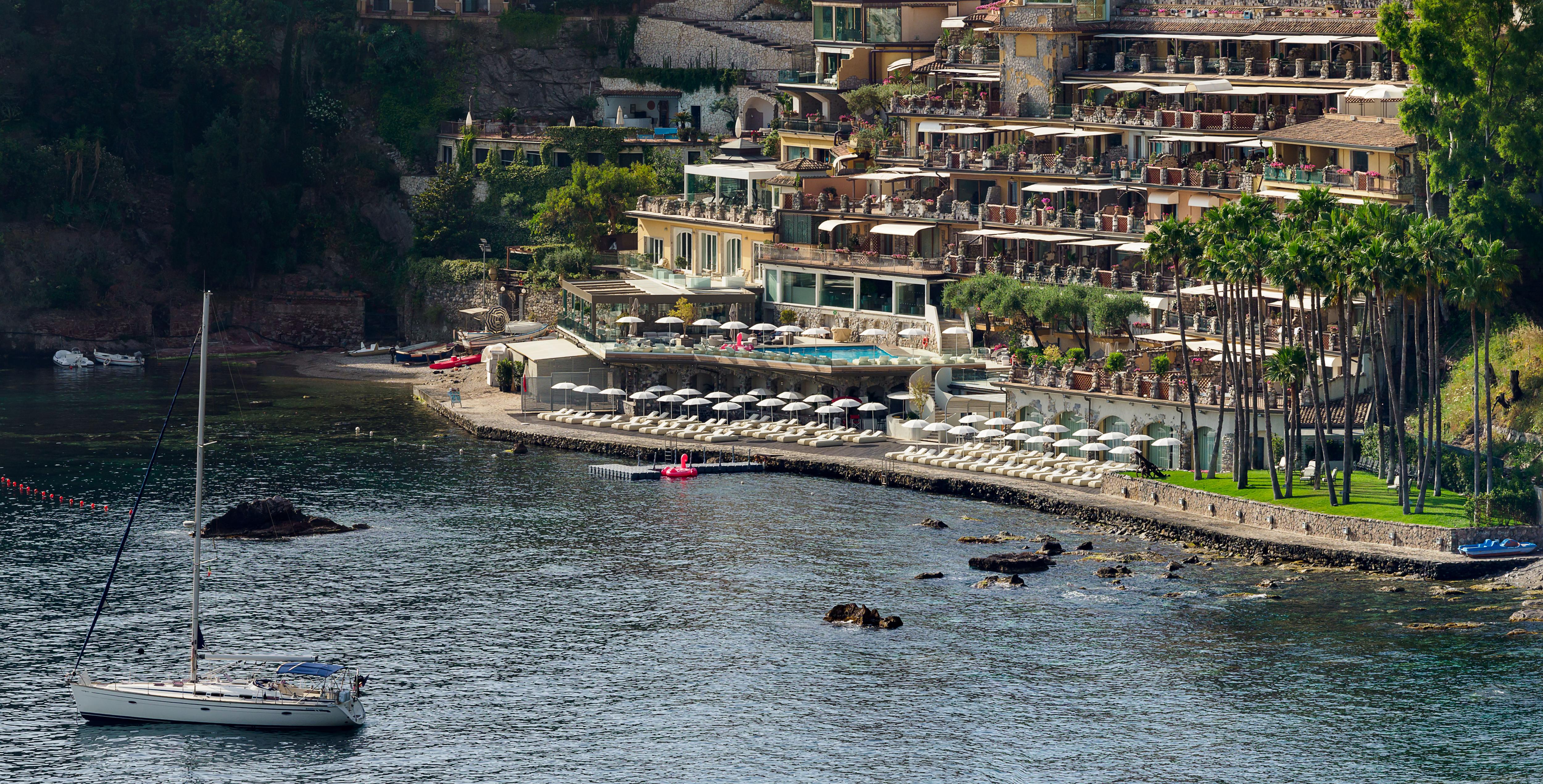 L'hôtel Atlantis Bay bénéficie d'un emplacement exclusif sur la ‘Baia delle Sirene’ et offre une vue imprenable sur la mer. Construit sur une falaise, il ressemble à un ancien et charmant village de pêcheurs. Le restaurant, la piscine et le solarium exclusif avec vue sur la mer sont situés sur les belles terrasses. Tout cela à un jet de pierre de la belle Taormina, accessible par le téléphérique voisin. L'hôtel a récemment fait l'objet d'une belle rénovation réussie dans un style contemporain sans compromettre son histoire classique.