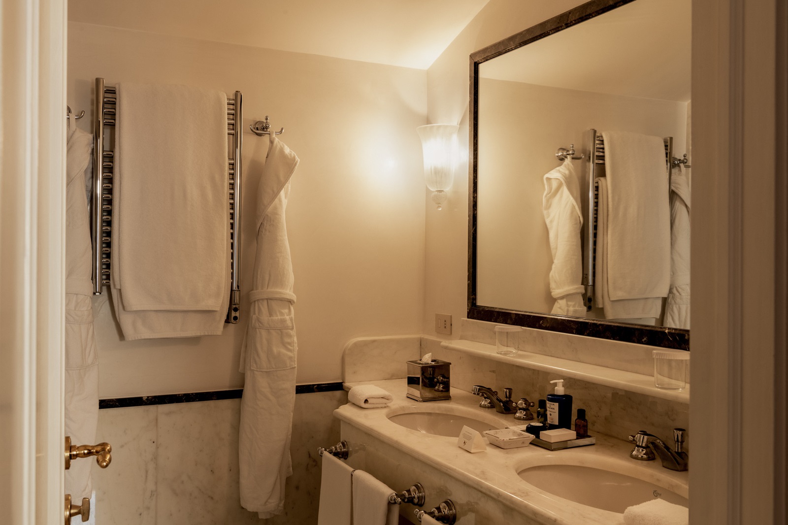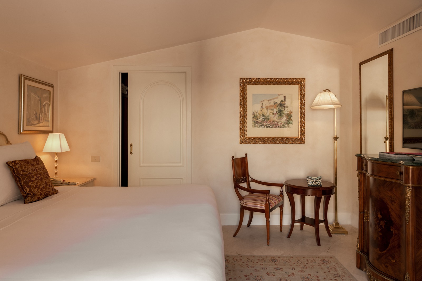 toutes les chambres et suites, réparties entre le bâtiment principal et la Villa Timeo adjacente, disposent d'une salle de bains avec bain et/ou douche, sèche-cheveux, télévision à écran plat, téléphone, minibar (€), appareil Nespresso®, coffre-fort, climatisation et sont toutes décorées différemment.