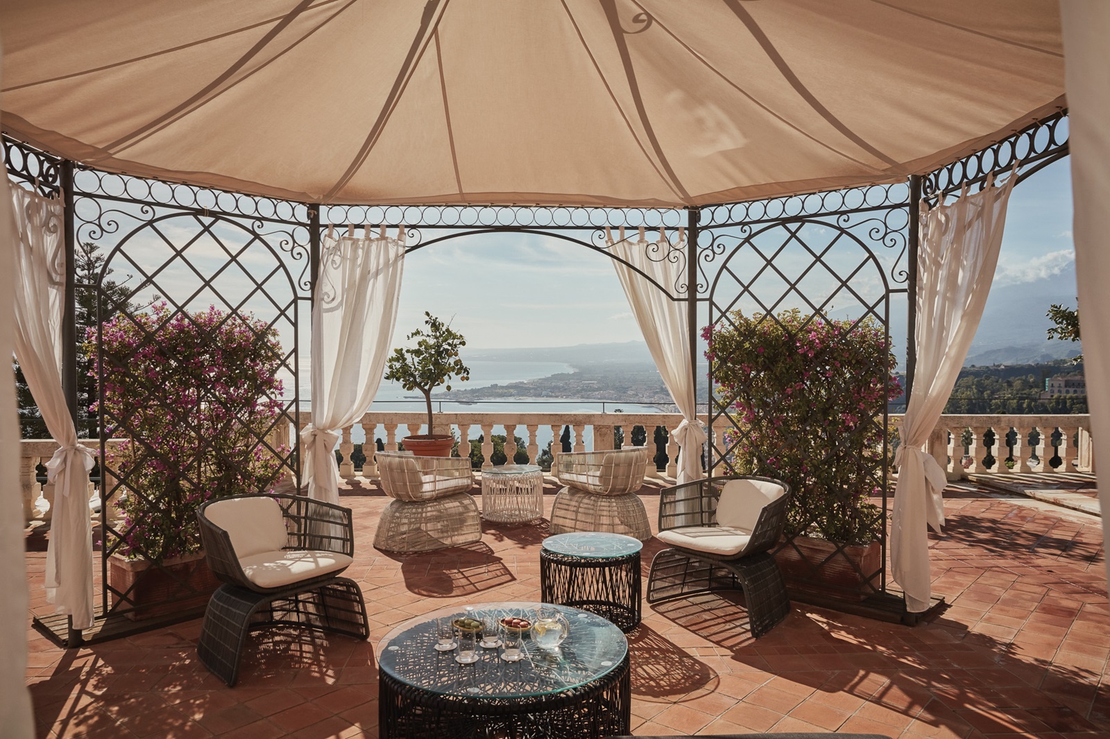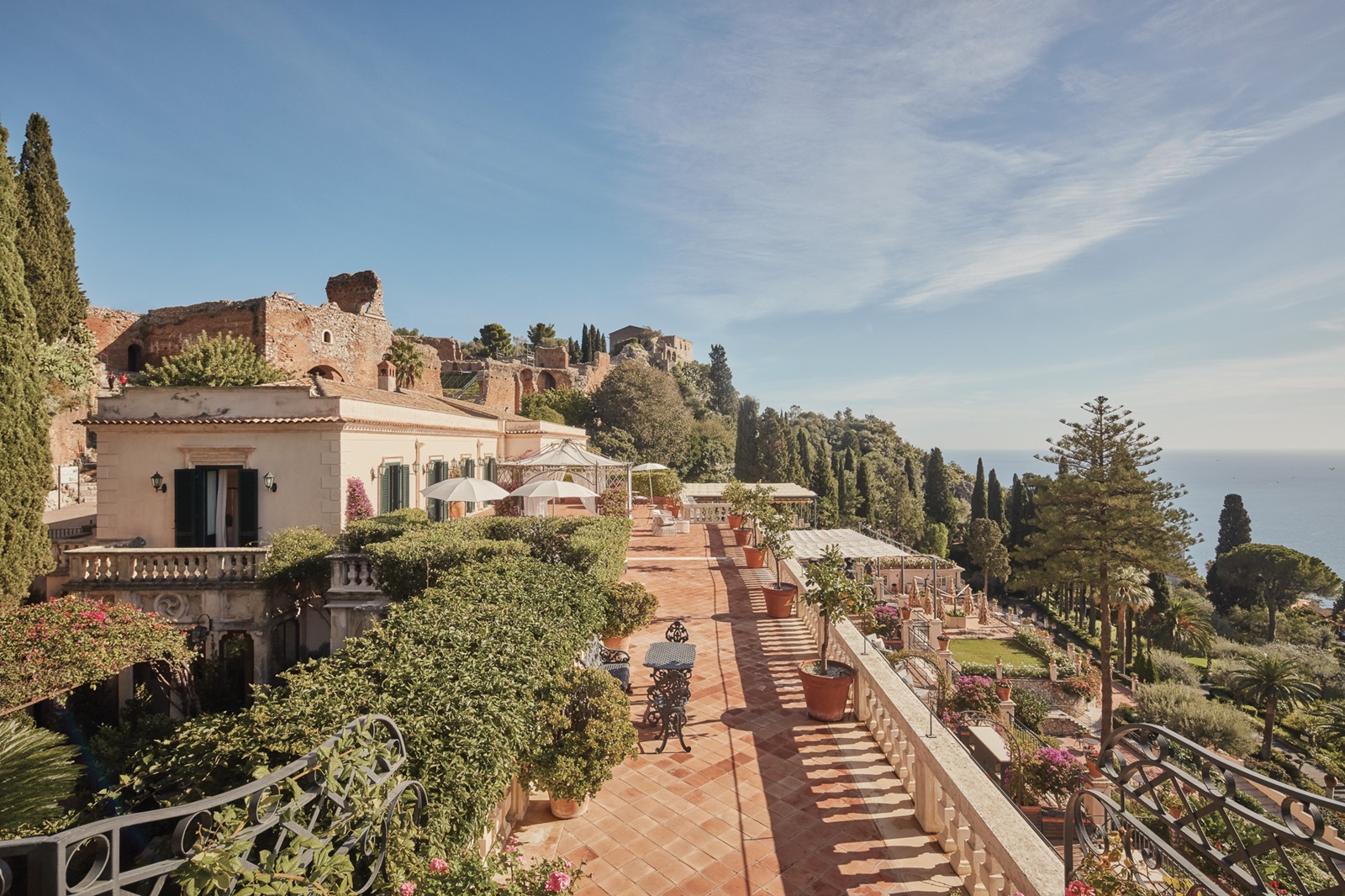 Cet hôtel exclusif et une fois de plus historique de la chaîne Belmond a été construit en 1873 dans un emplacement magnifique à côté du théâtre grec et entouré d'un magnifique parc de 6 ha. De nombreuses stars mondiales, telles qu'Audrey Hepburn et Elizabeth Taylor, ont séjourné dans cet hôtel emblématique, la "Terrasse littéraire" étant leur lieu de rencontre préféré. Une navette gratuite vous emmène à l'hôtel jumeau Villa Sant'Andrea, sur la baie de l'une des plus belles baies de Sicile, où vous pourrez profiter de la plage privée et des eaux turquoise.