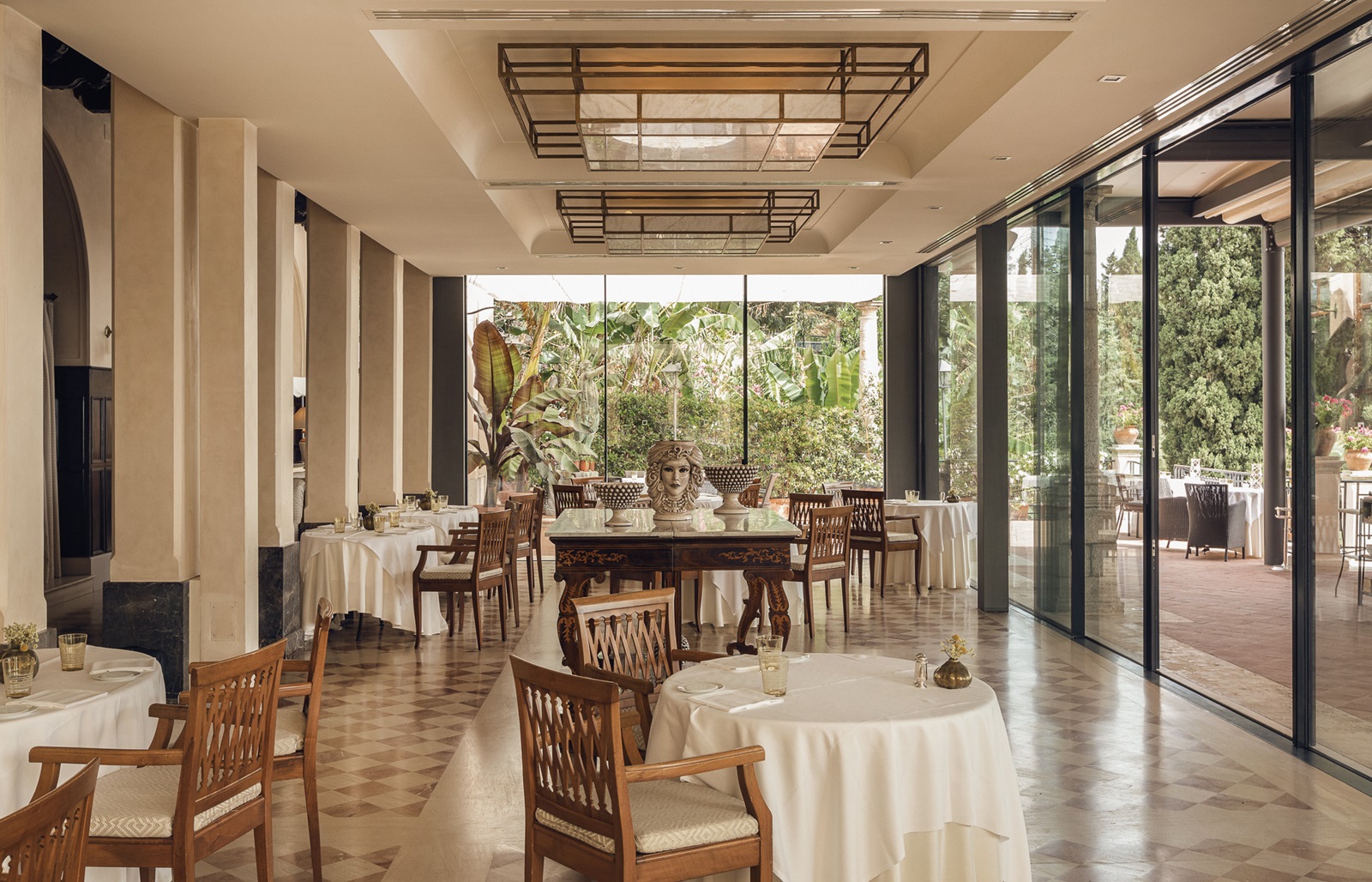 2 restaurants à la carte : ‘Timeo’ (méditerranéen et sicilien ; déjeuner et dîner) et le petit et exclusif ‘Otto Geleng’ (16 places, menu sicilien ; dîner)