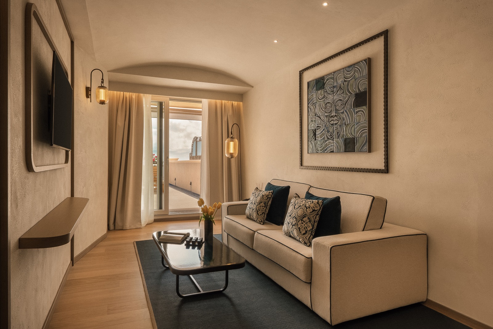 suites junior vue mer (30 m²) de style classique avec coin salon et terrasse spacieuse