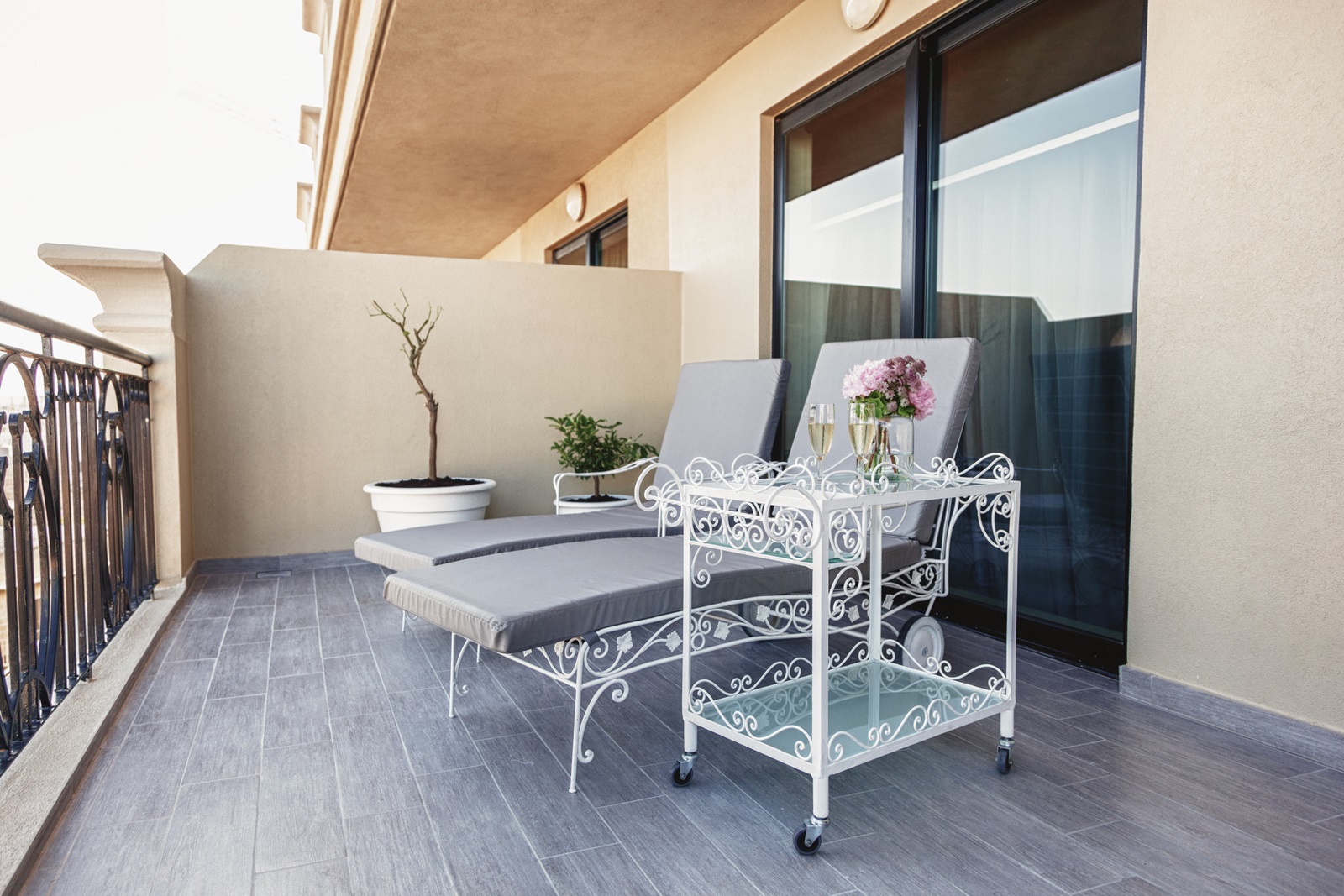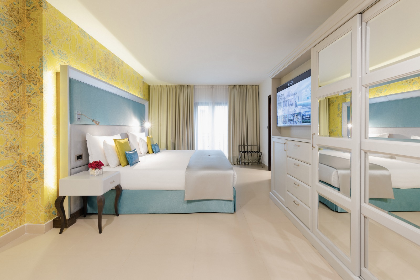 chambres de luxe (38 m²) avec bain ou douche, climatisation / chauffage, sèche-cheveux, téléphone, coffre-fort, peignoir, minibar, télévision par satellite, wifi, percolateur à café et thé, balcon