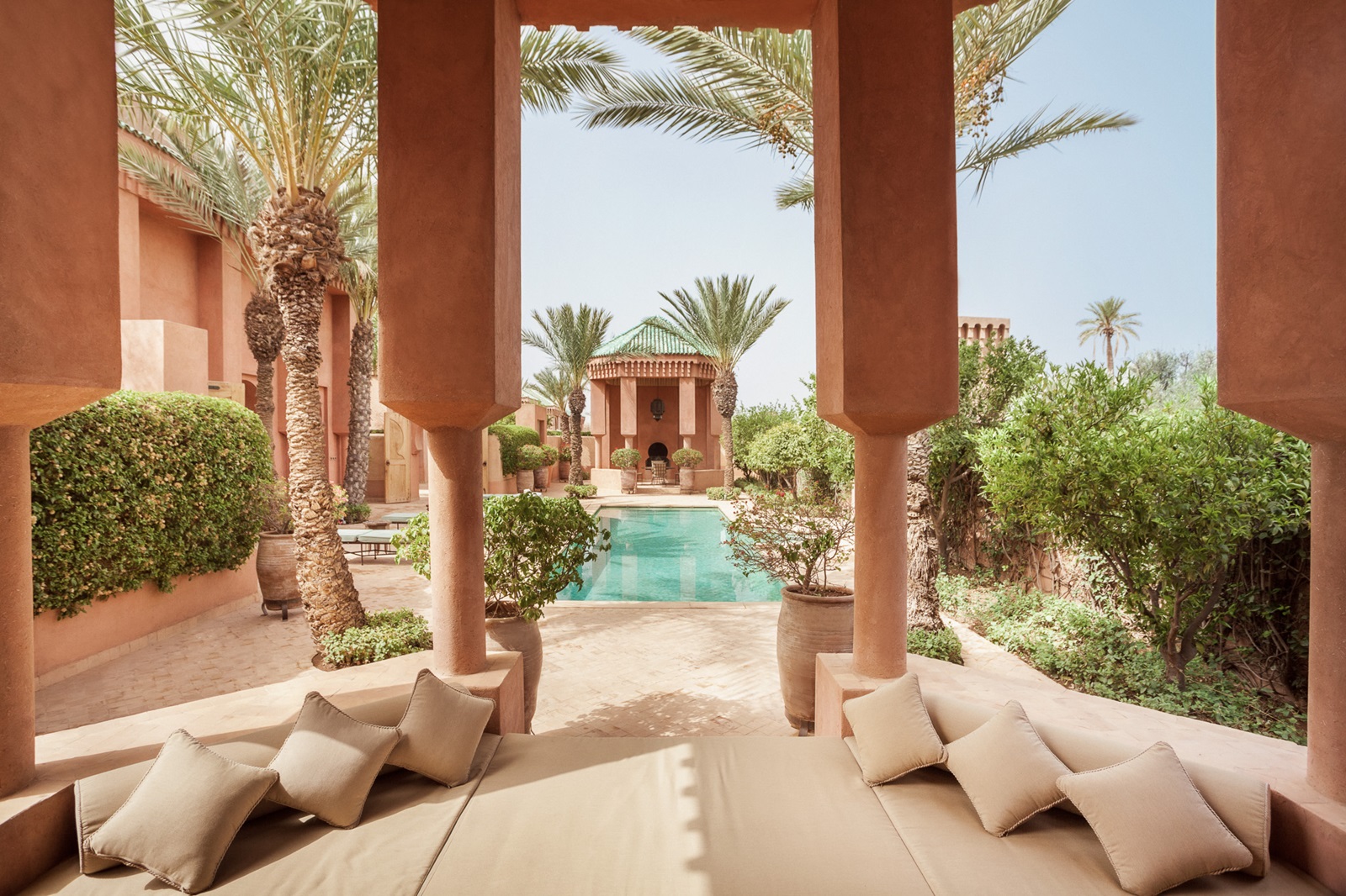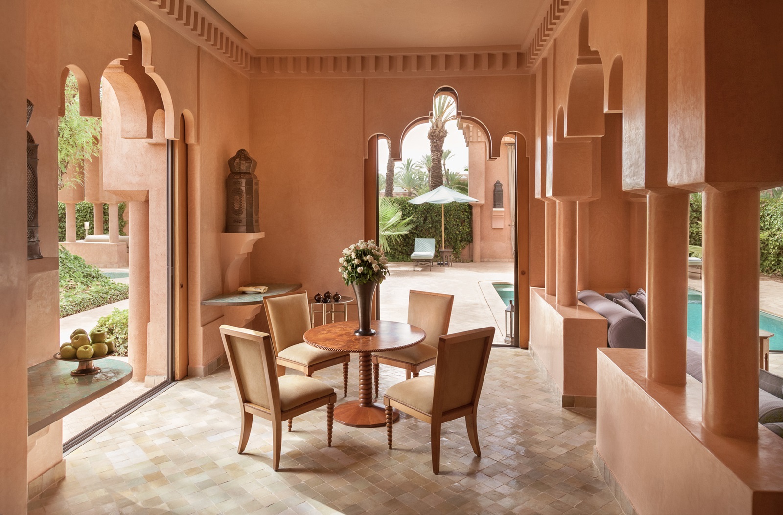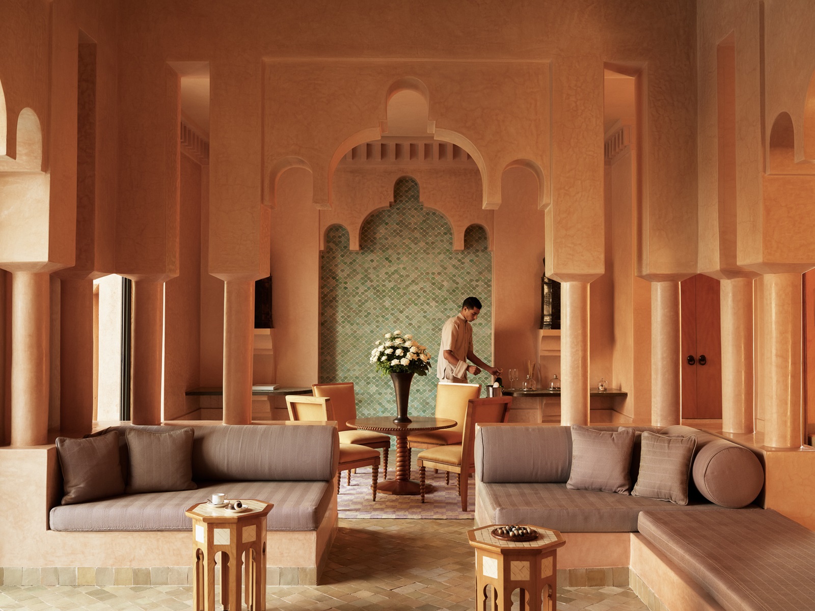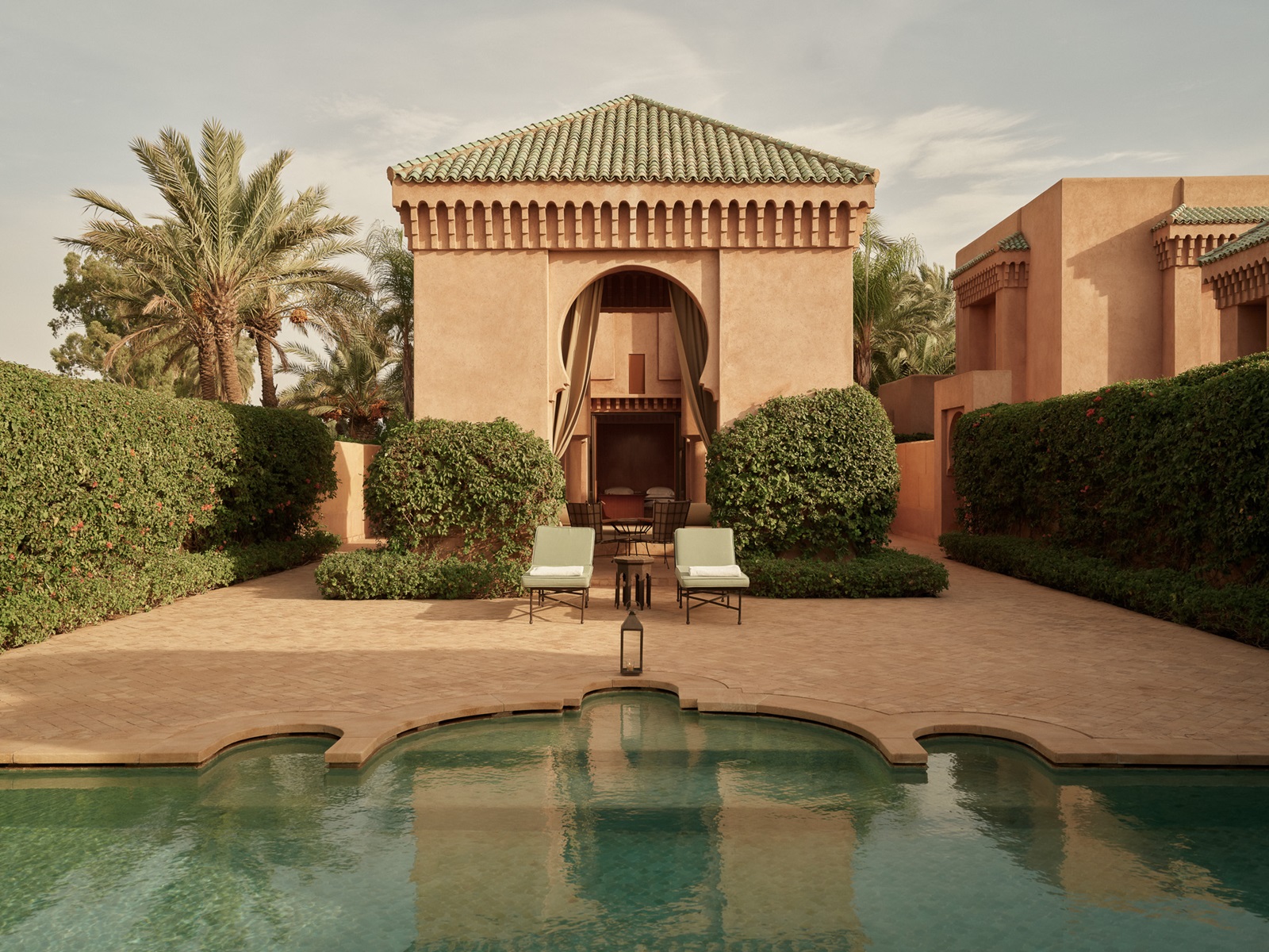 Inspiré par les bâtiments roses du vieux Marrakech, le magnifique Amanjena est situé dans une oasis de calme au milieu de vastes jardins et de grands espaces ouverts. Des cours ombragées avec des fontaines mènent au bassin central qui irrigue les jardins luxuriants. Autour de ce bassin central se trouvent les pavillons et maisons spacieux et luxueux, tous dotés de jardins ou de piscines privés. Vous pourrez vous détendre au bord de la belle piscine ou jouer au golf sur le terrain de 27 trous d'Amelkis, situé à côté de l'hôtel. Pour un séjour unique sous le signe de la paix et de l'intimité !