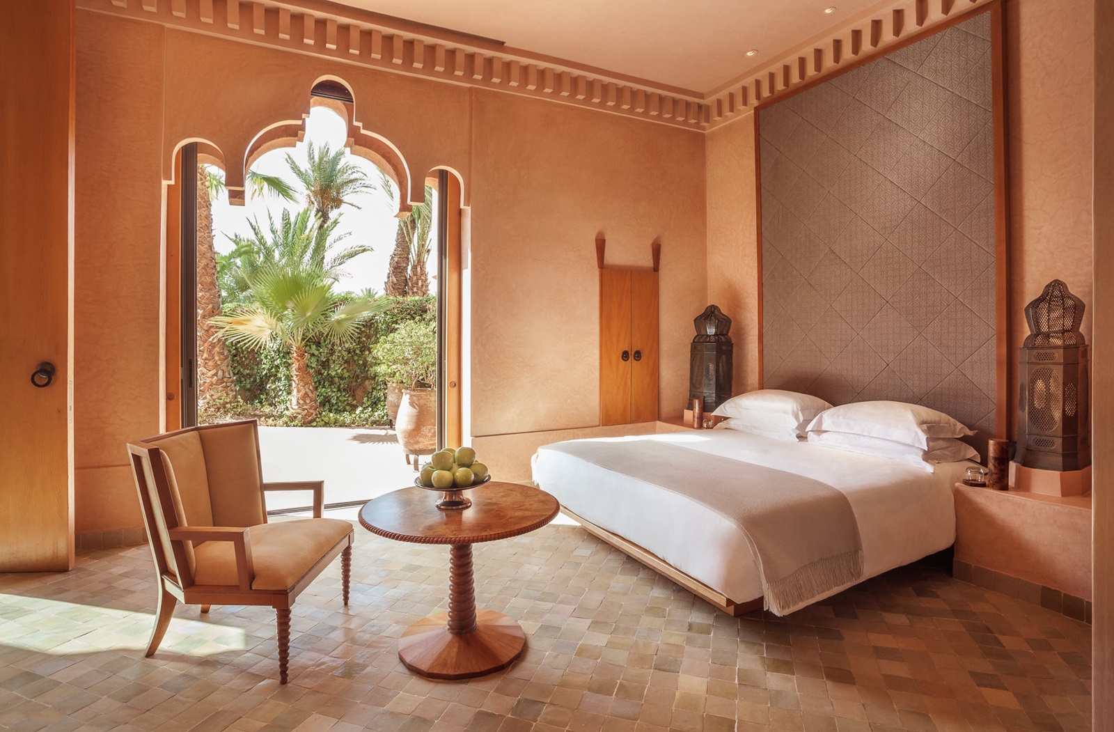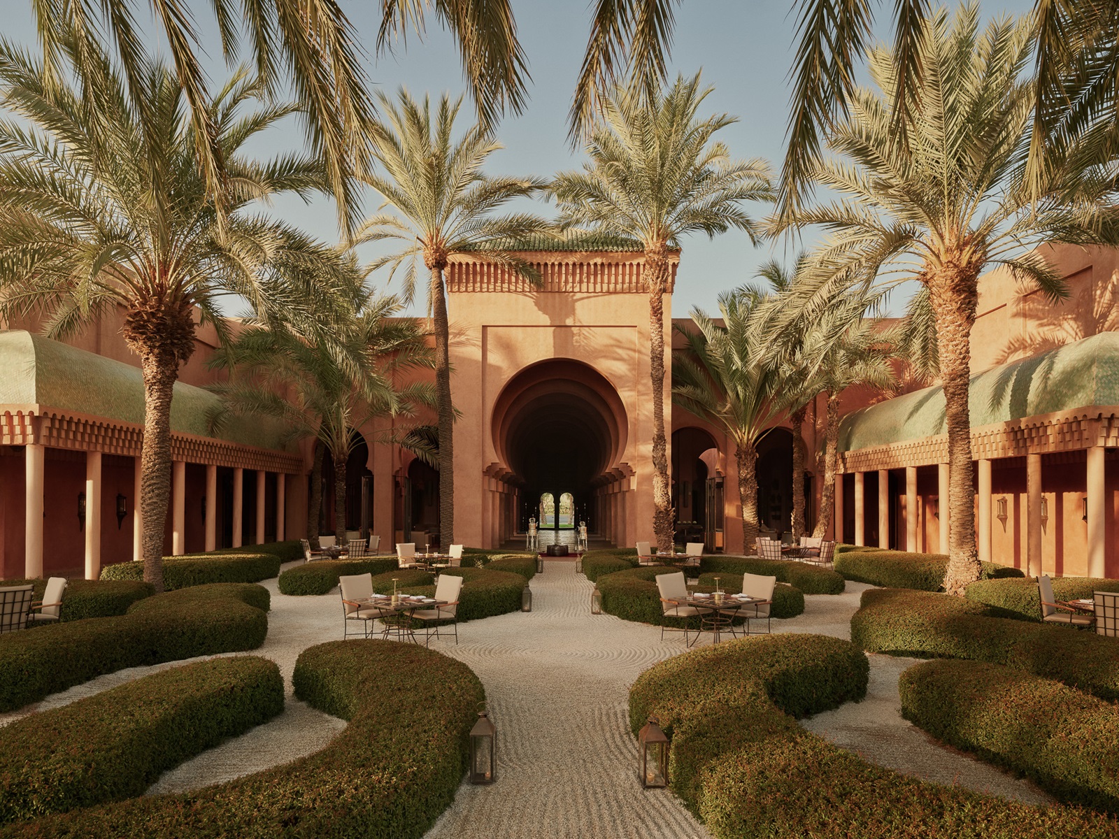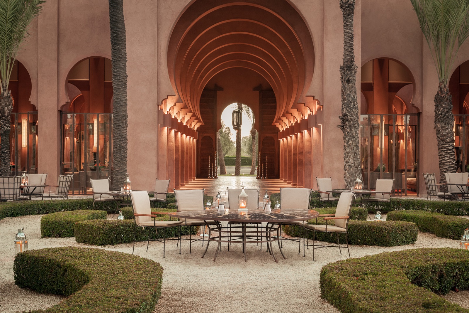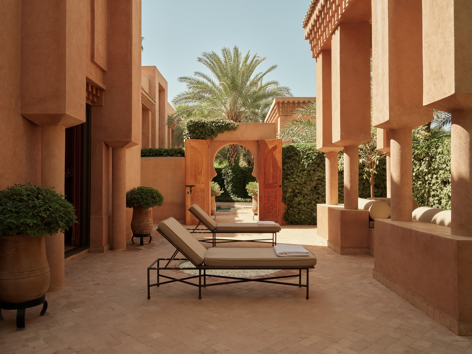 Inspiré par les bâtiments roses du vieux Marrakech, le magnifique Amanjena est situé dans une oasis de calme au milieu de vastes jardins et de grands espaces ouverts. Des cours ombragées avec des fontaines mènent au bassin central qui irrigue les jardins luxuriants. Autour de ce bassin central se trouvent les pavillons et maisons spacieux et luxueux, tous dotés de jardins ou de piscines privés. Vous pourrez vous détendre au bord de la belle piscine ou jouer au golf sur le terrain de 27 trous d'Amelkis, situé à côté de l'hôtel. Pour un séjour unique sous le signe de la paix et de l'intimité !