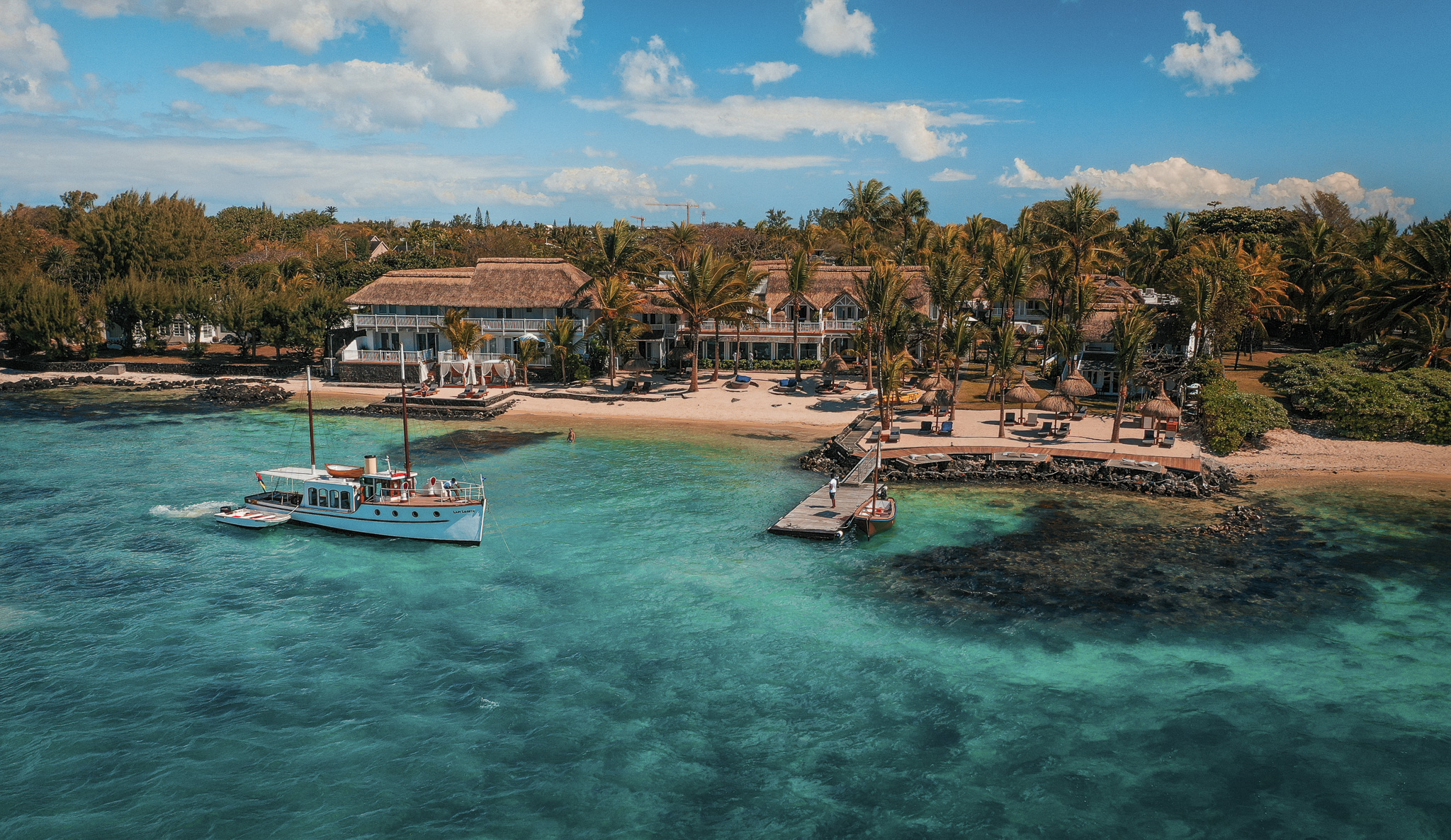 ponton et propre bateau M/S Lady Lisbeth (le plus ancien bateau à moteur de l'île Maurice)