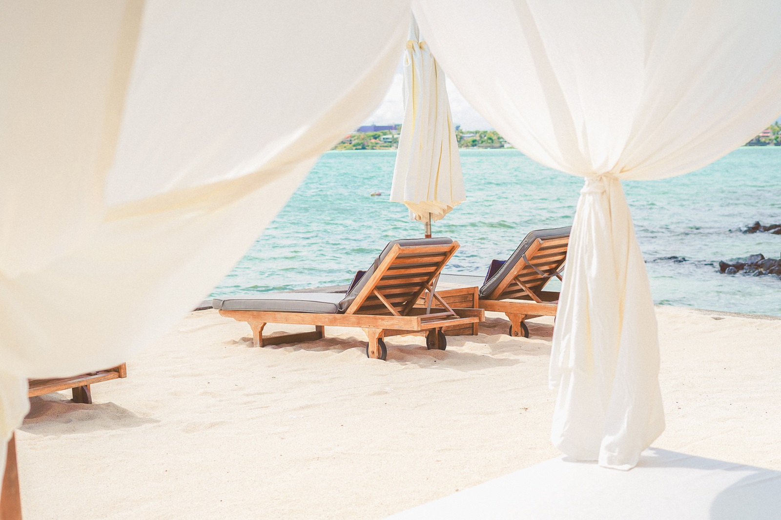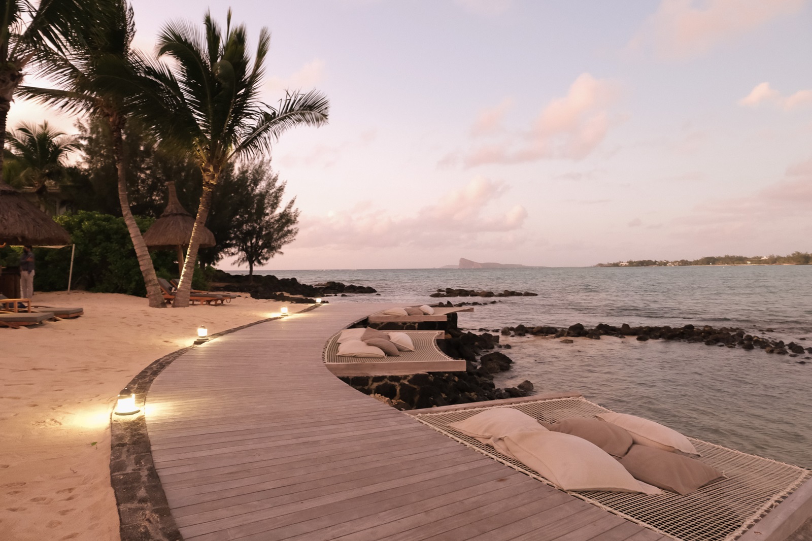 situation idyllique le long d'une petite plage de sable avec vue sur la baie de Grand Baie