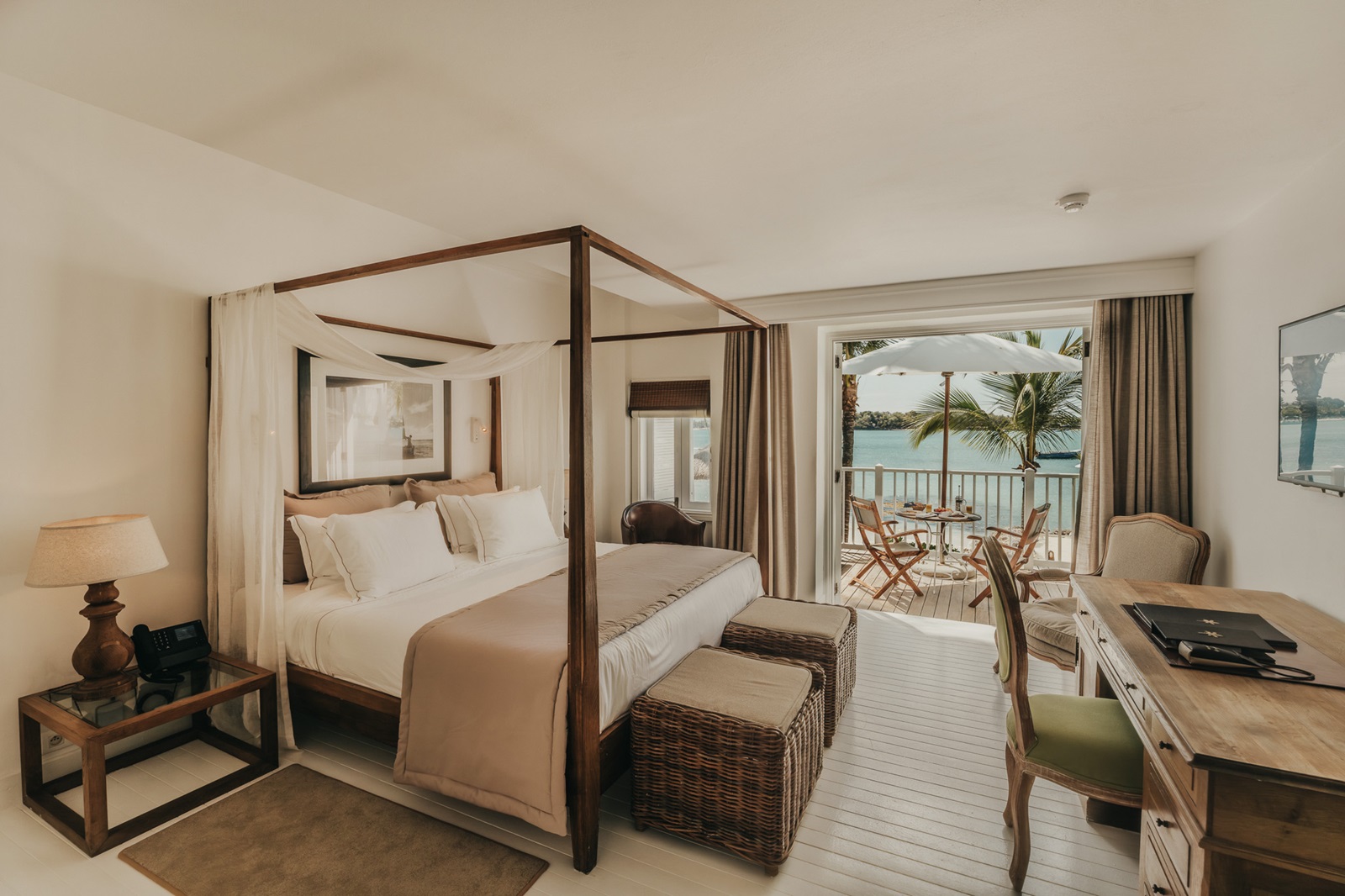 toutes les chambres extrêmement élégantes, coloniales et romantiques sont équipées d'une baignoire, douche (certaines avec douche extérieure), sèche-cheveux, appareil Nespresso® ( pas de dans la catégorie Charme), climatisation, coffre-fort, télévision à écran plat, wifi (gratuit), minibar (€) et balcon ou terrasse