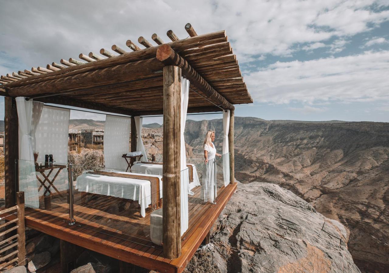 L'Alila Jabal Akhdar, un hôtel de luxe unique et de petite taille, est situé à 2000 mètres au-dessus du niveau de la mer, au bord d'un ravin dans les puissantes montagnes d'Al Hajar. L'architecture est particulière : le design minimaliste a été parfaitement intégré dans le paysage naturel unique et une grande importance a été accordée à la durabilité. C'est l'adresse idéale pour les voyageurs d'aventure ou pour ceux qui veulent simplement profiter du silence et de la tranquillité au bord de l'idyllique piscine à débordement. Les 84 belles suites situées dans le bâtiment principal et dans de petits groupes (d'un étage) offrent une intimité supplémentaire et des vues impressionnantes sur les montagnes et le ravin.