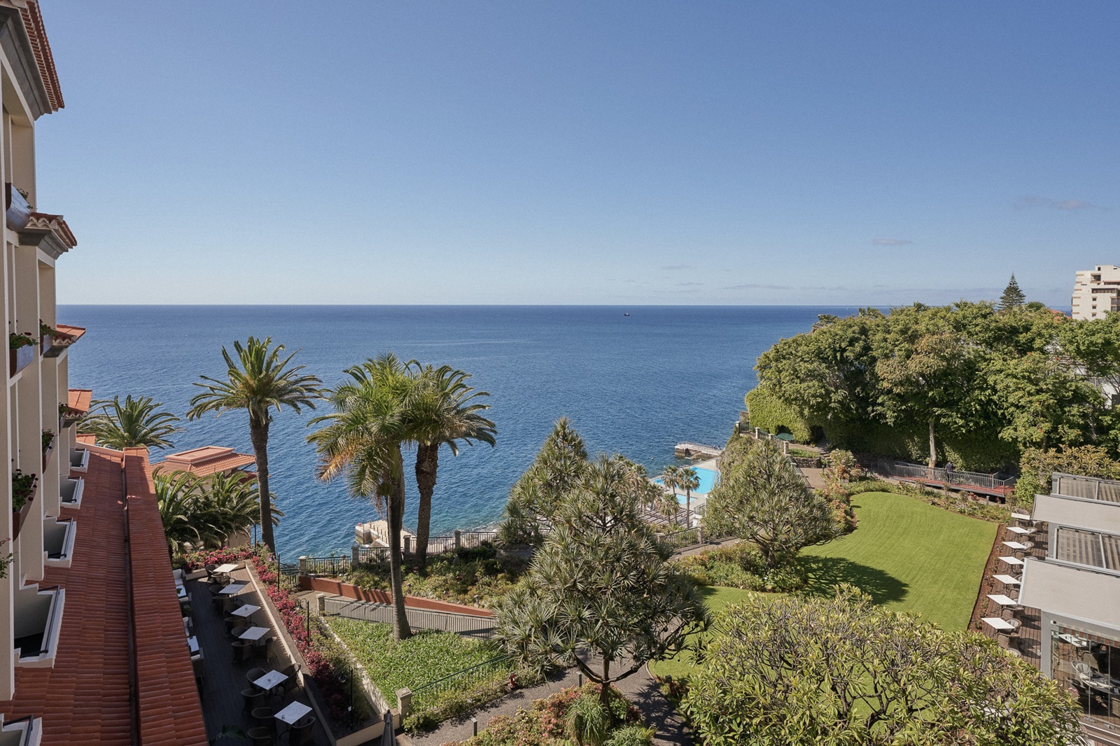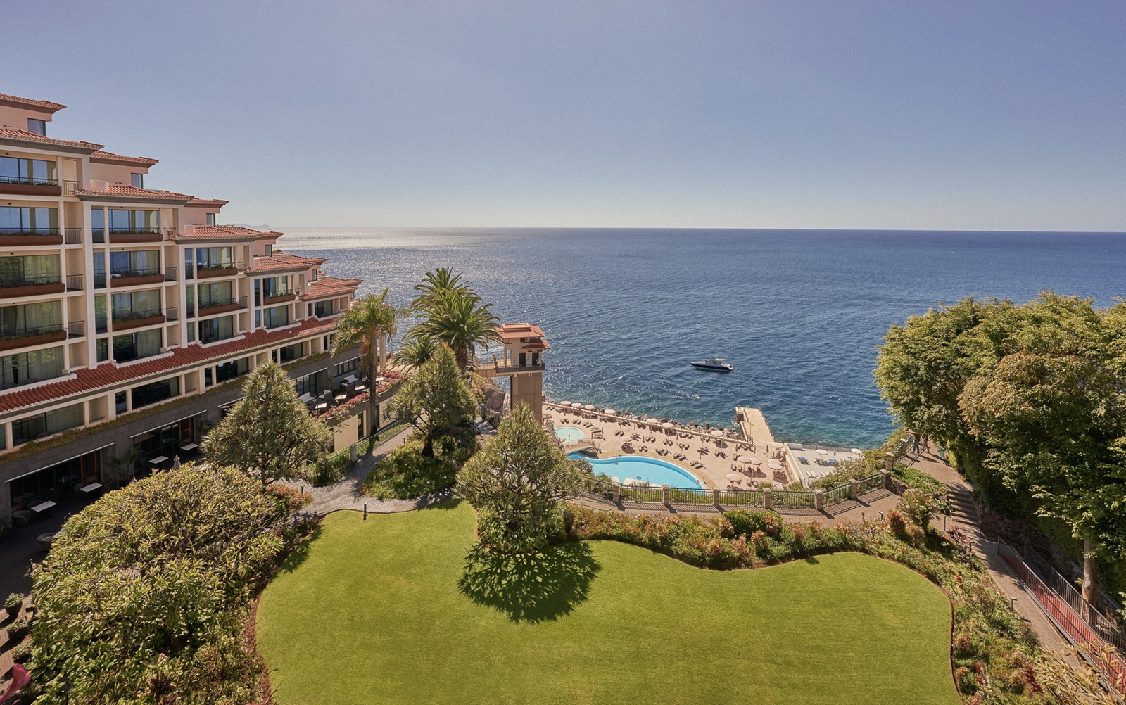 Ce grand hôtel est installé sur une falaise, au bord de l’océan Atlantique, et offre une vue sur la baie. Il se situe à distance de marche de la sympathique ville de Funchal. Vous passerez ici des vacances inoubliables grâce aux chambres élégantes de l’établissement, à son restaurant étoilé dirigé par Benoît Sinthon et à son spa qui vous proposera entre autres un massage zen en extérieur.