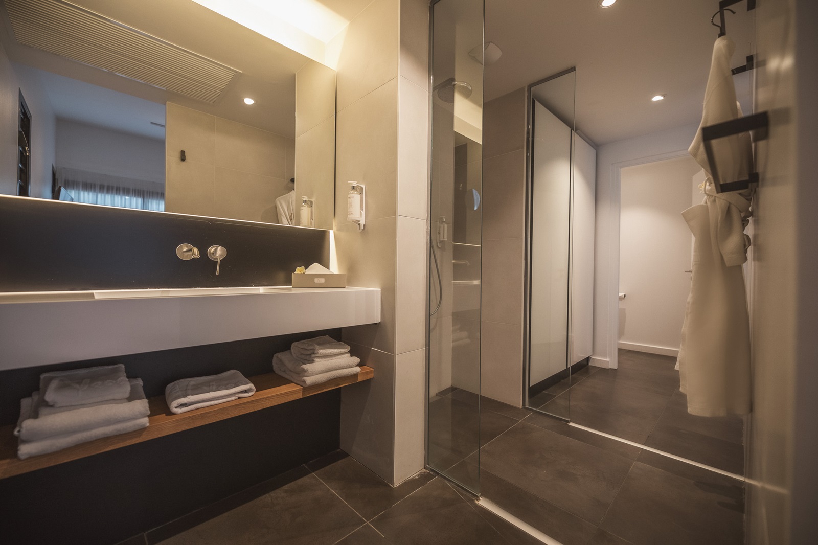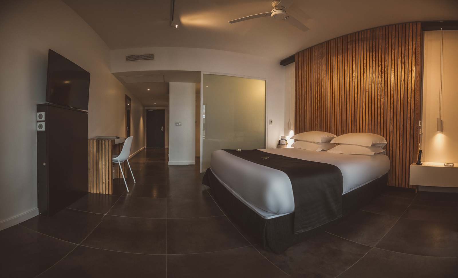 toutes les chambres contemporaines et spacieuses, disposent d'une salle de bains (douche, sèche-cheveux), téléphone, télévision à écran plat, coffre-fort, kitchenette, réfrigérateur, machine à café espresso, coin salon, climatisation, wifi (gratuit) et balcon ou terrasse