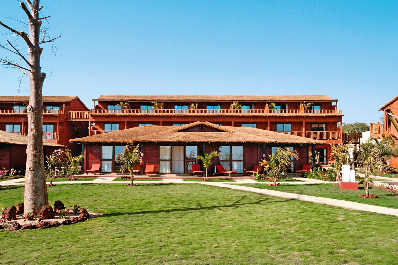toutes les chambres, réparties en 5 catégories dans les bungalows ou le bâtiment principale et décorées dans un style africain avec des couleurs chaudes disposent d'une douche, sèche-cheveux, téléphone, minibar (€, location de 2€/jour), coffre-fort, climatisation et balcon ou terrasse