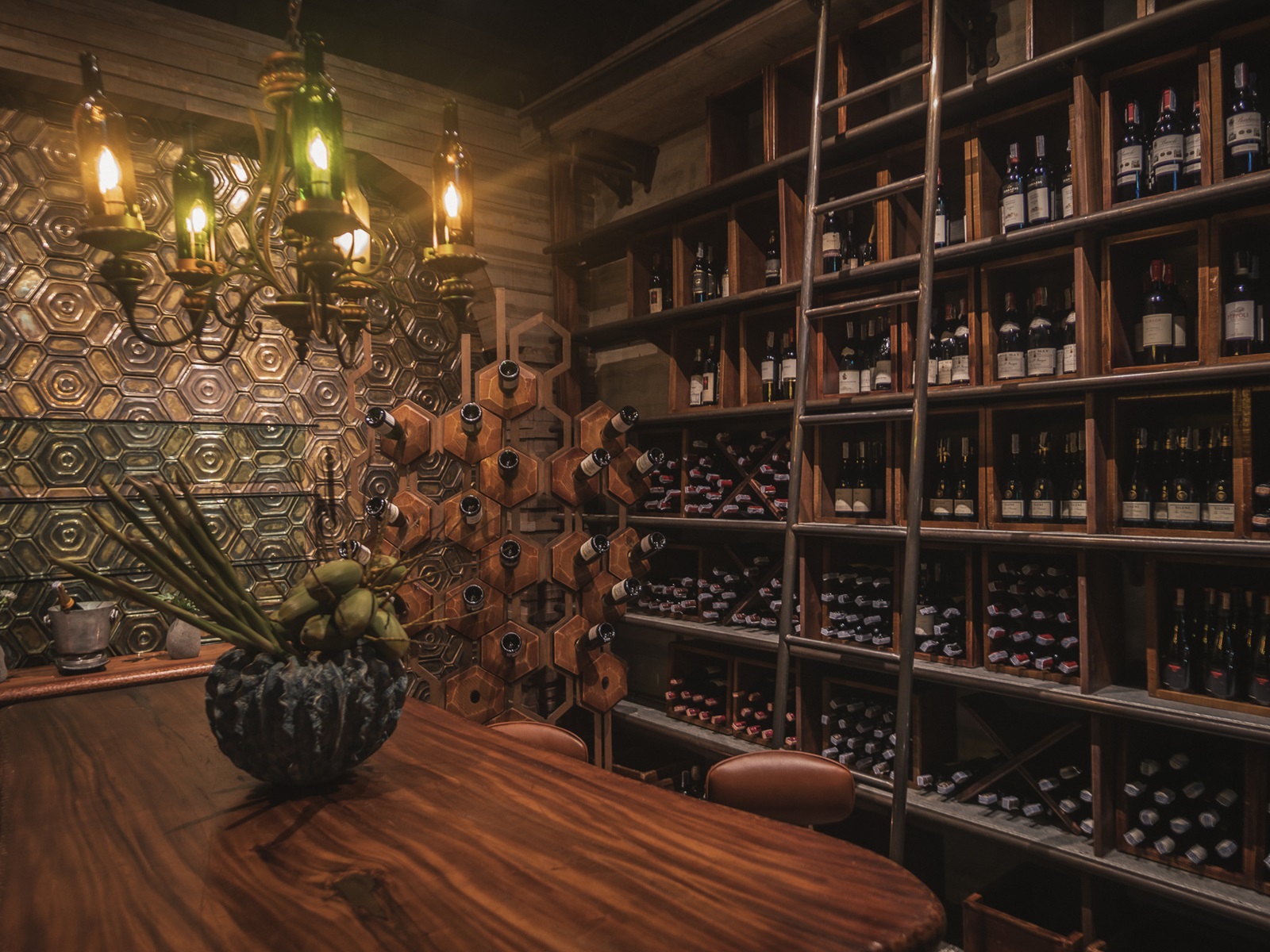 'The Cellar', restaurant privé avec grande table pour six personnes, idéal pour des dîners intimistes