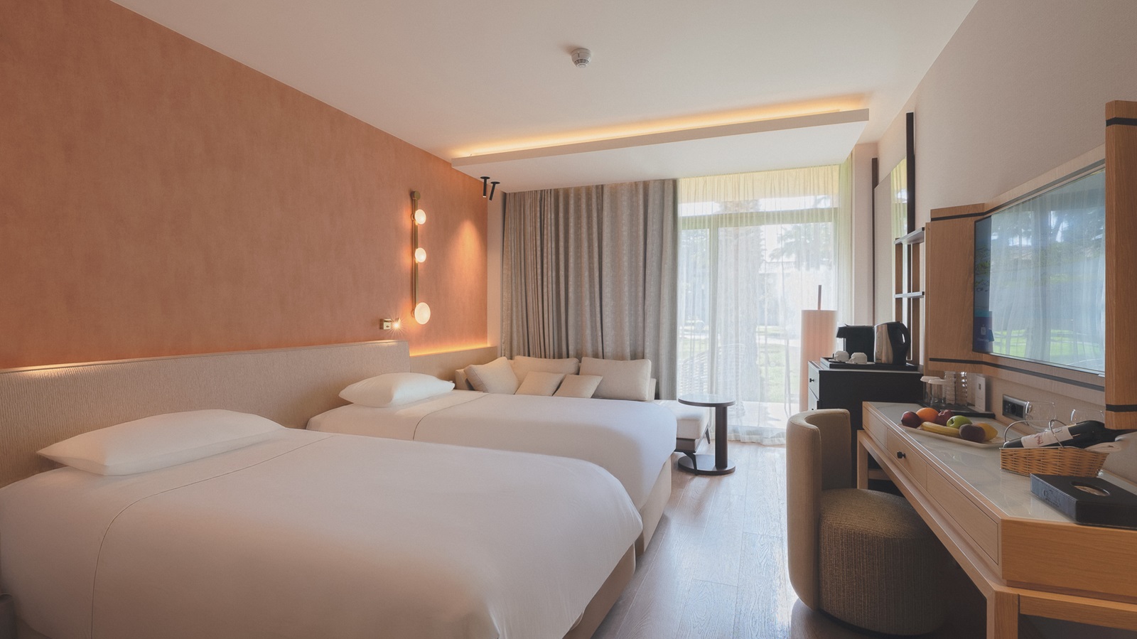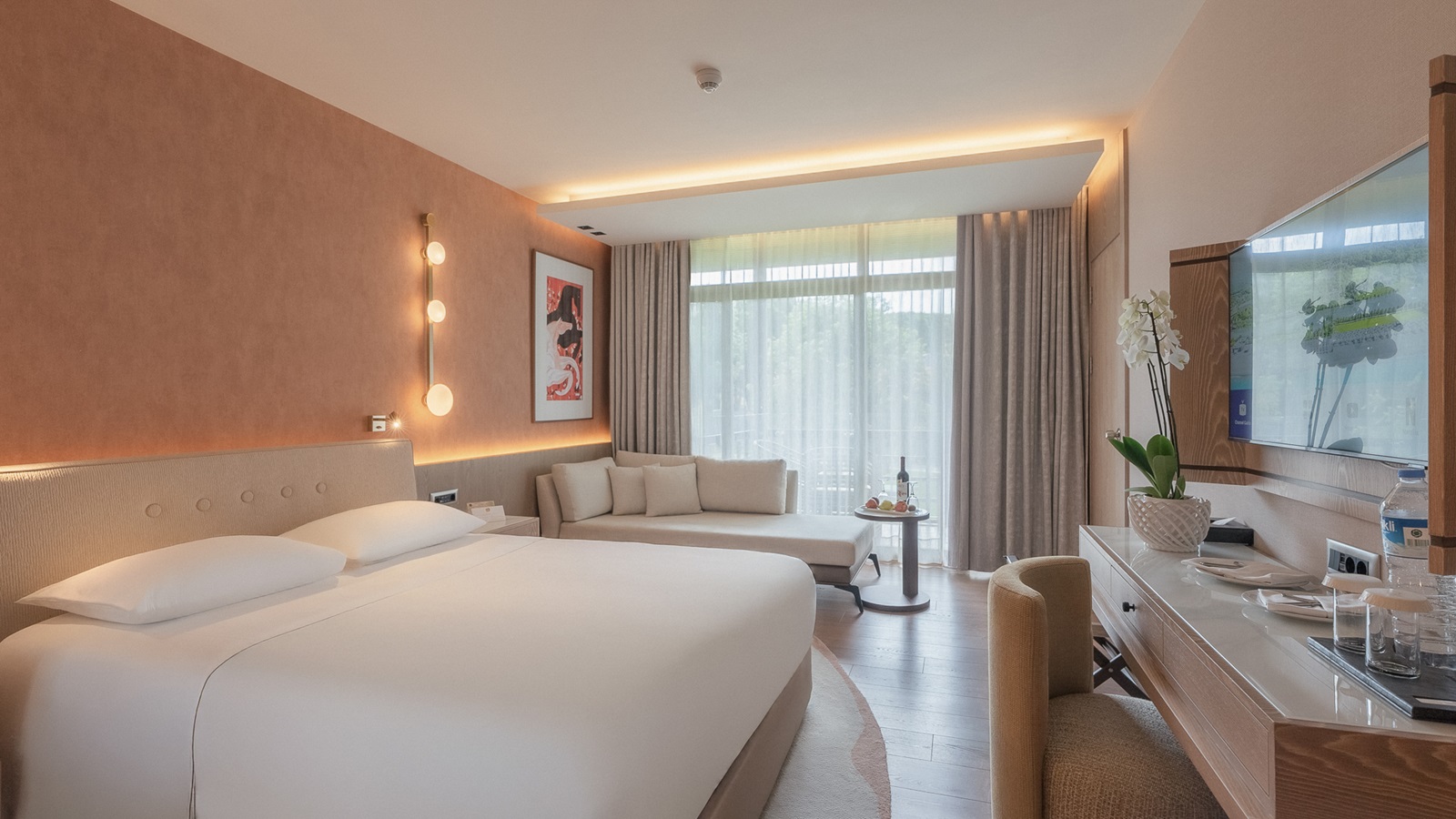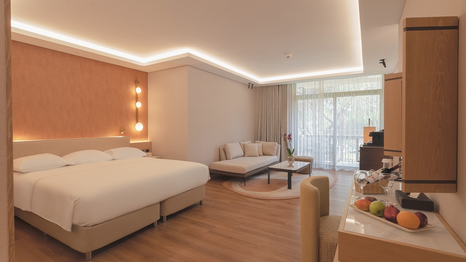 toutes les chambres sont équipées d'une douche, sèche-cheveux, sorties de bain et pantoufles, climatisation, téléphone, TV à écran plat, percolateur à café et à thé, minibar, coffre-fort, coin salon, balcon ou terrasse