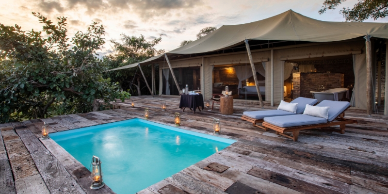 « Tembo », qui signifie éléphant en swahili, reflète le rythme paisible qui règne ici. En safari, vous rencontrez lions, éléphants et léopards. Envie d’une pause ? Offrez-vous un soin bien-être en plein air, sous le ciel africain. Côté gastronomie, Tembo Plains est une destination à part entière. Seul établissement Relais & Châteaux du Zimbabwe, il fait de la cuisine fine une véritable œuvre d’art : petit-déjeuner sous les acacias, déjeuners au bord de l’eau, dîners sous les étoiles ou peut-être même dans une cave à vin secrète. Le lieu du repas reste une surprise — tout comme les saveurs qui vous attendent.
