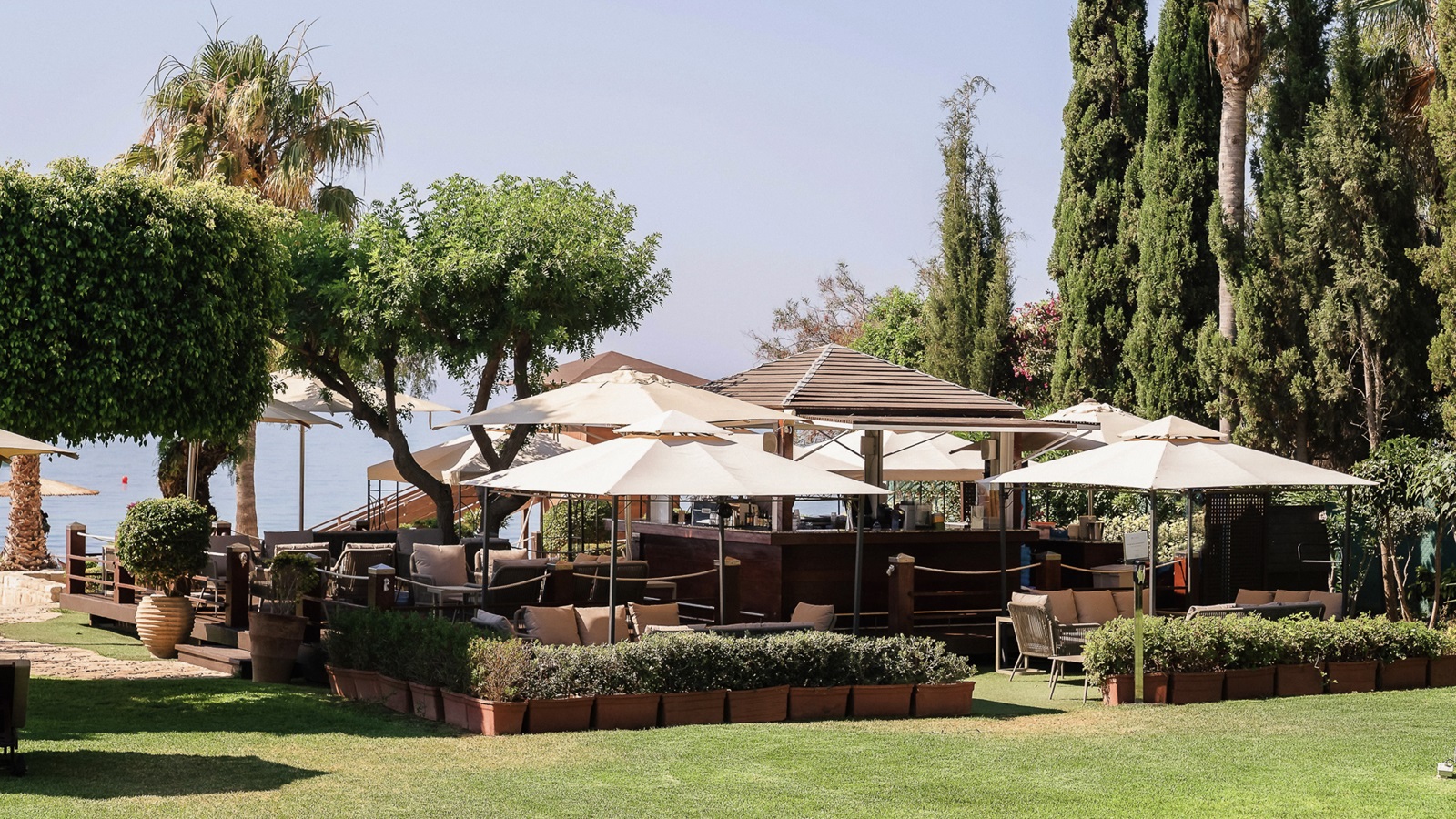 6 bars : bar de plage, 2 bars de piscine, bar à cocktails, Seven C's Bar et Ouzeri