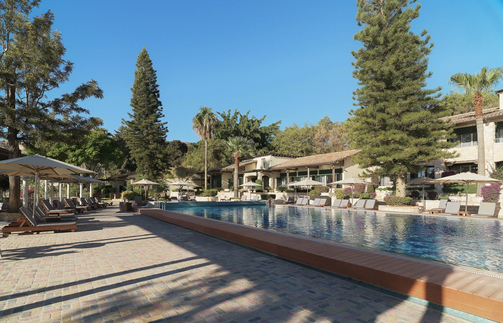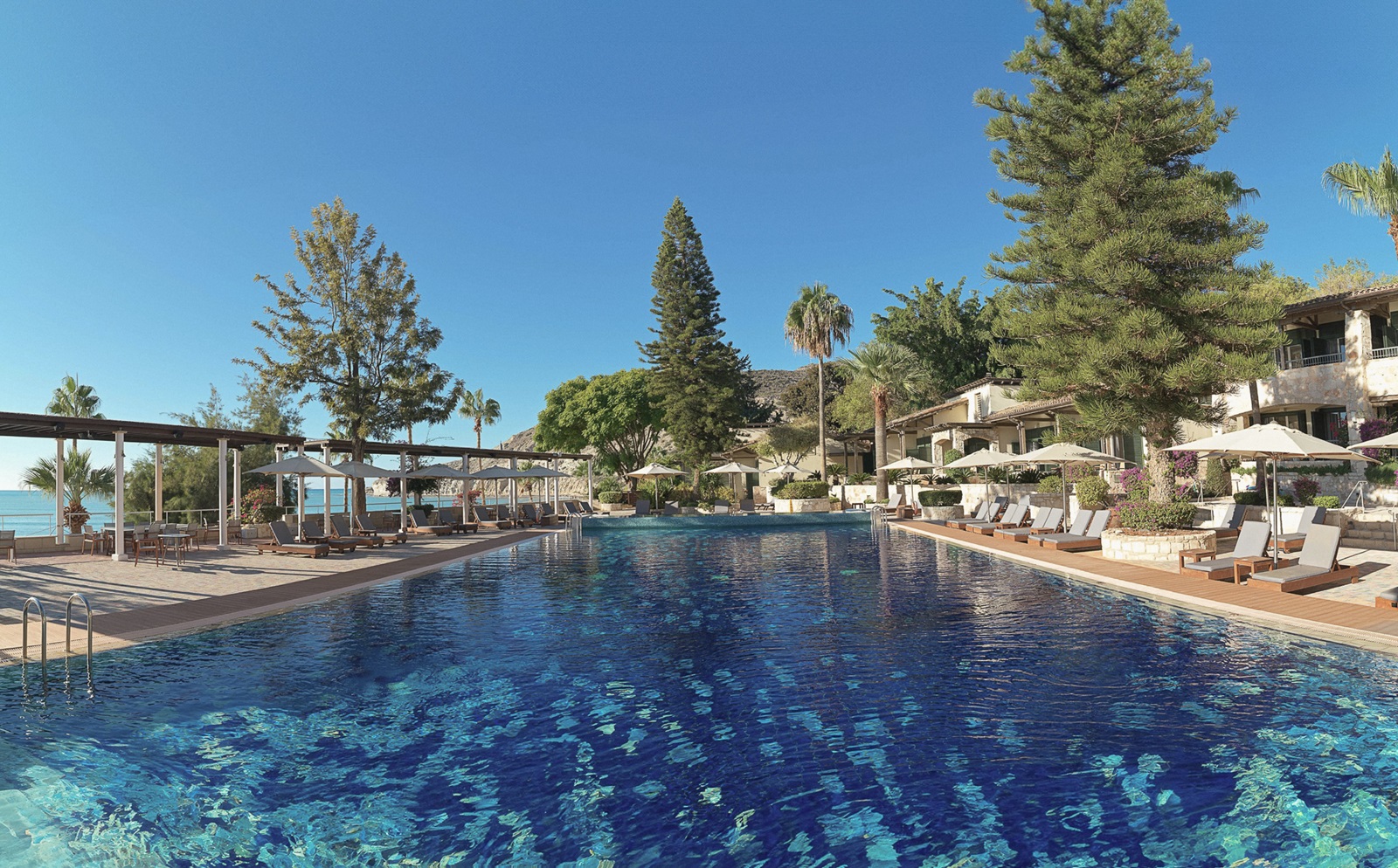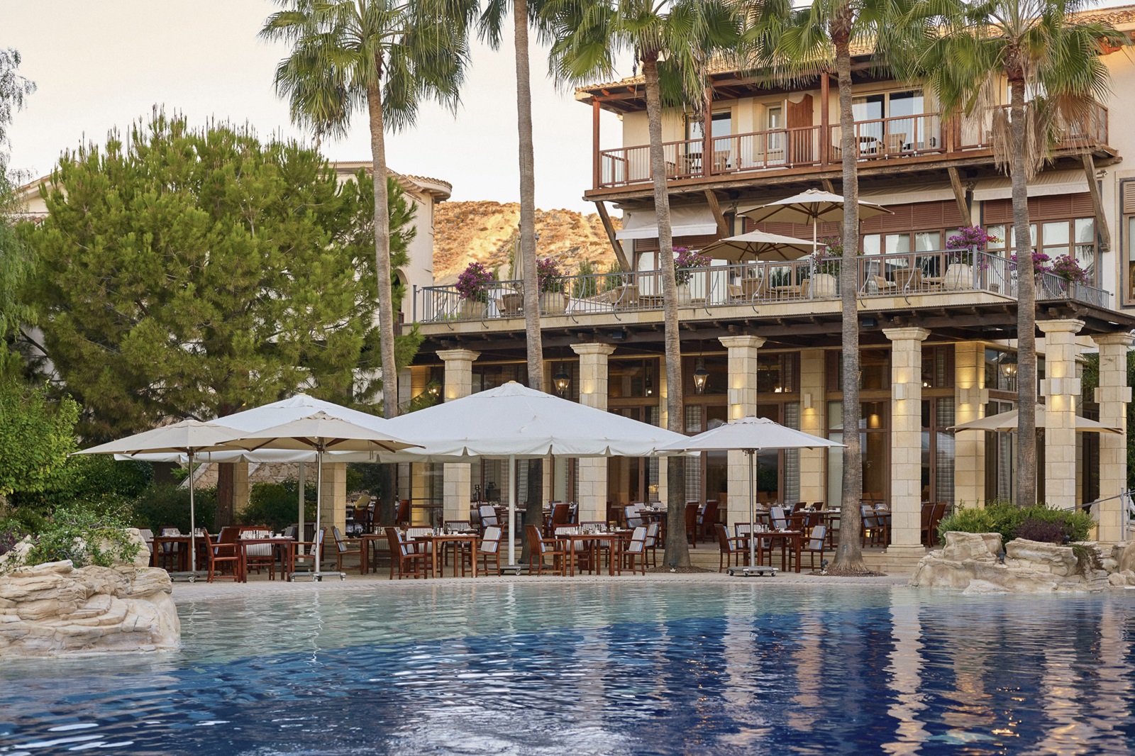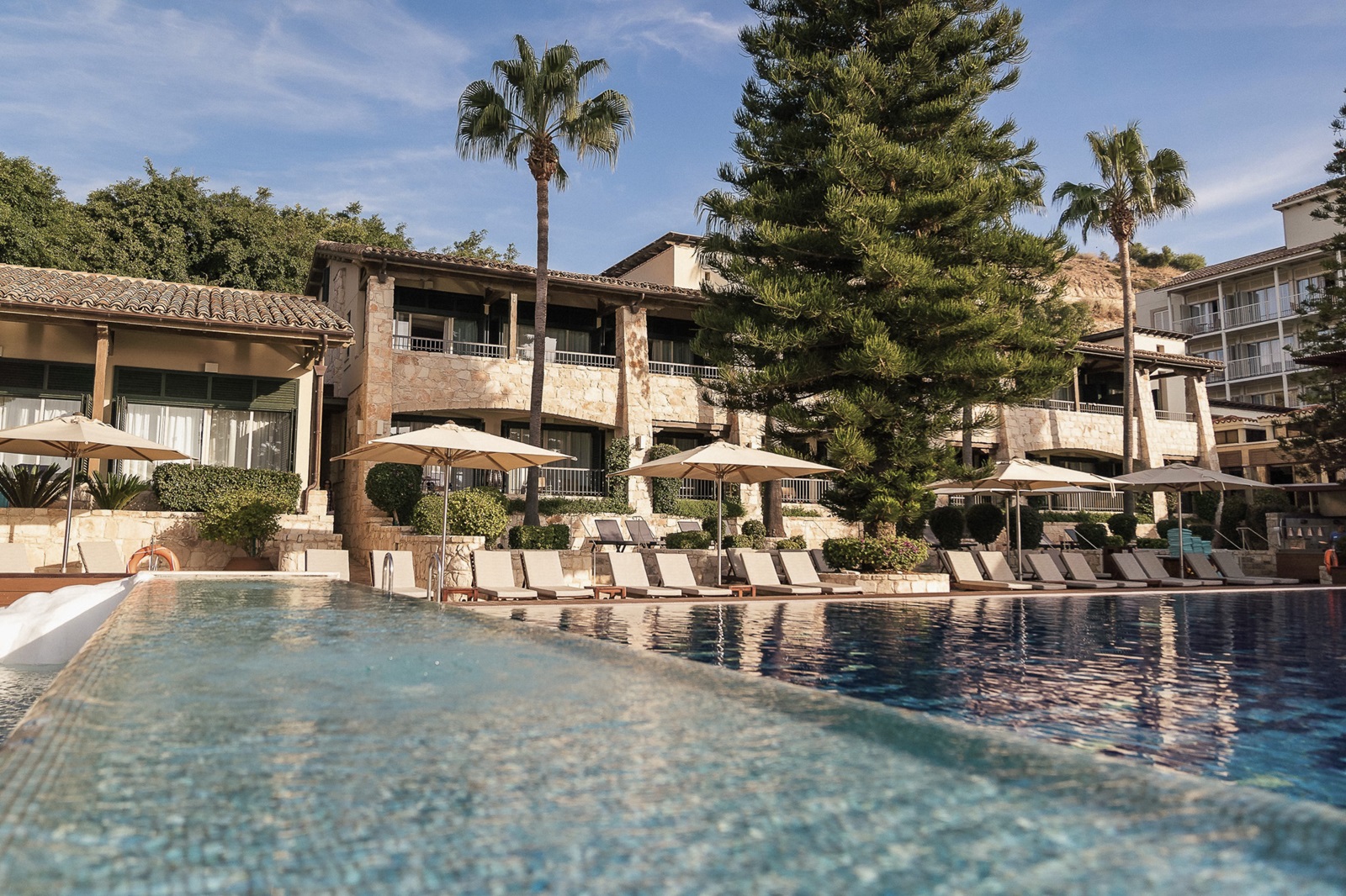 Directement situé au bord de la plage et entouré de verdure, le Columbia Beach Resort est un luxueux établissement authentique situé à Limassol, à Chypre. La piscine évoque un lagon tropical, et en toile de fond, des rochers surgissent de l’eau de mer cristalline. Les suites donnent sur la piscine, sur la baie ou sur le jardin de l’hôtel impeccablement entretenu, agrémenté de palmiers et d’oliviers. Le soir, vous pourrez déguster des spécialités grecques et italiennes à côté de la piscine éclairée ou dans l'élégant décor du restaurant. Le lendemain, vous pourrez pratiquer des sports nautiques, taper la balle sur le terrain de golf ou vous relaxer dans le spa largement primé.