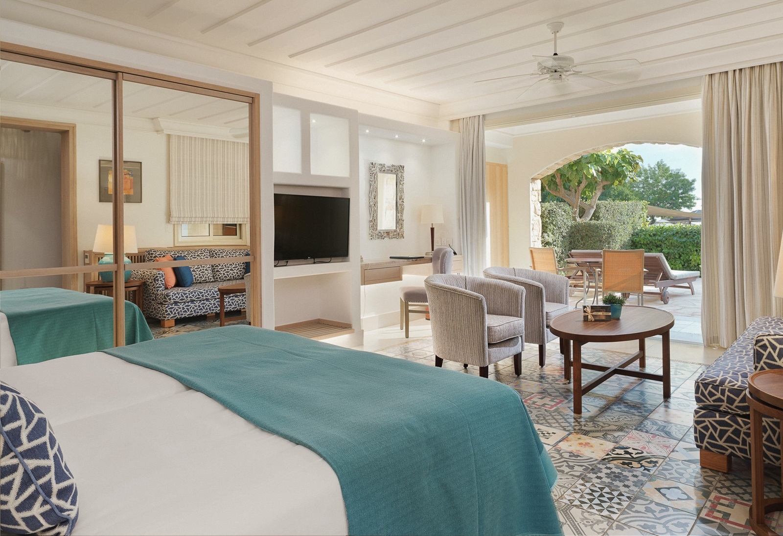 suites junior (43 m²) avec séjour/chambre à coucher, vue piscine ou vue mer