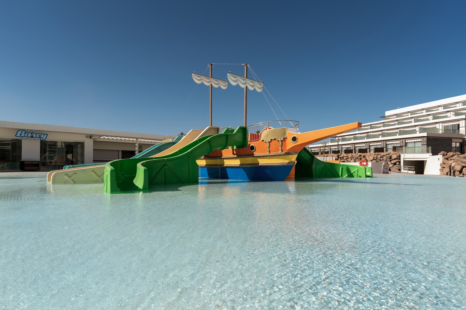 Le luxueux complexe 4 étoiles Barceló Playa Blanca à Lanzarote offre tout pour des vacances reposantes ou actives : une piscine de 180 m, un centre de bien-être complet avec sauna et des installations sportives comme le padel et une salle de fitness avec vue sur la mer. Grâce au bateau pirate spectaculaire et au programme d'animation complet, les enfants se sentent aussi chez eux. Cerise sur le gâteau, par temps clair, un panorama à couper le souffle sur Fuerteventura vous attend.
