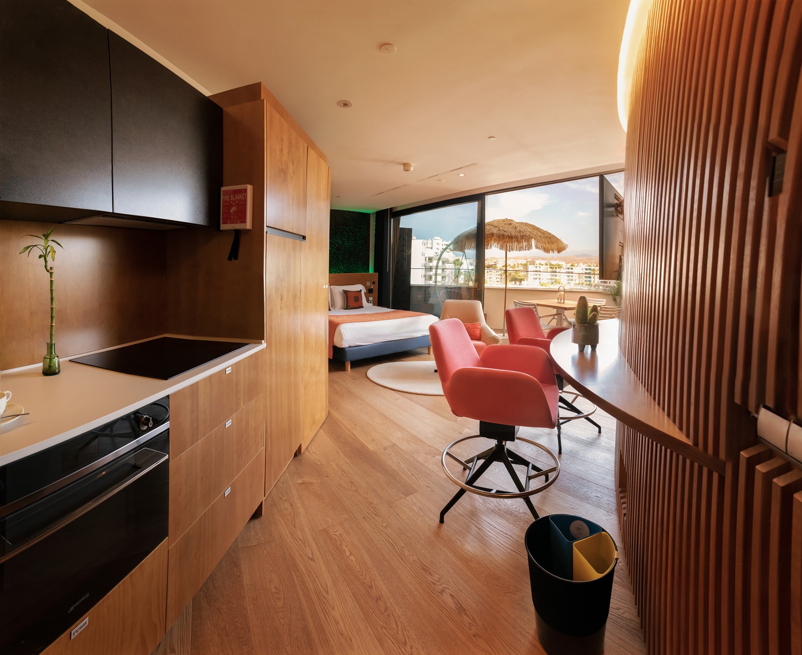 'Sky' suites (105 m²) sur les coins aux derniers étages, avec séjour et chambre à coucher séparée, 2 balcons, vue mer et vue sur les dunes