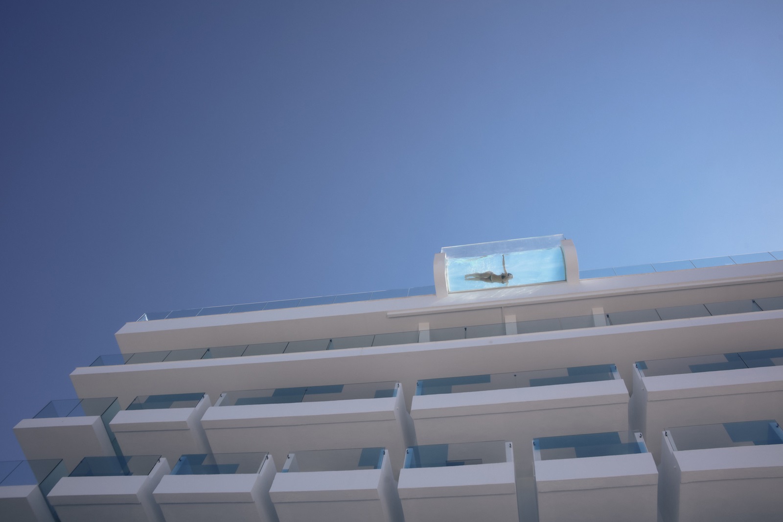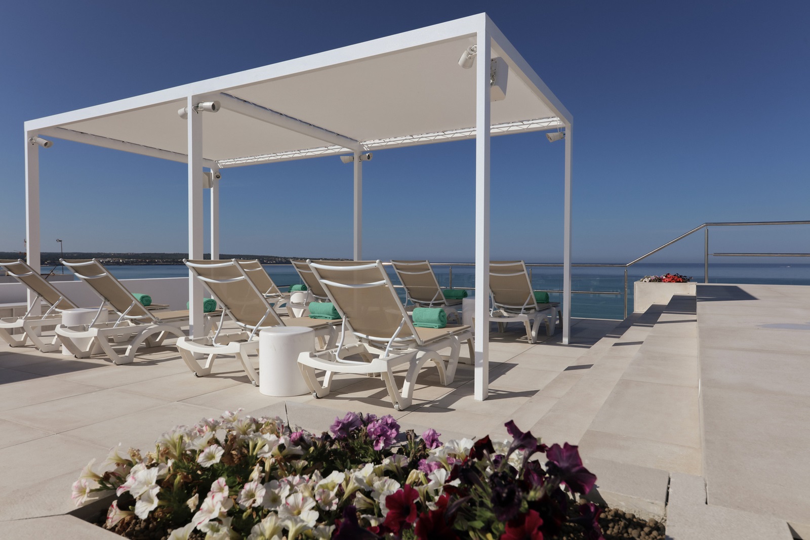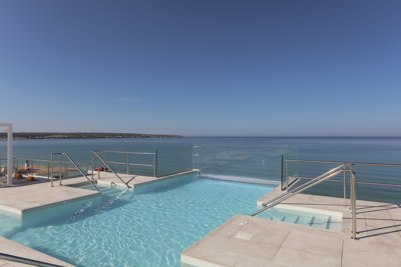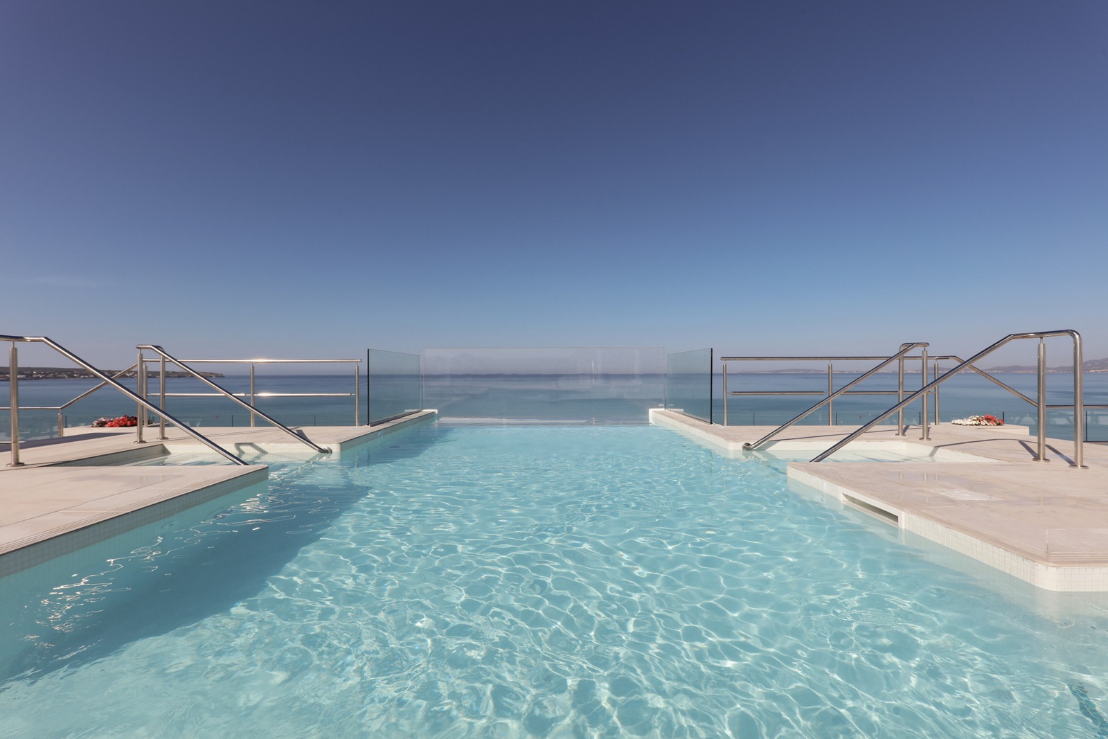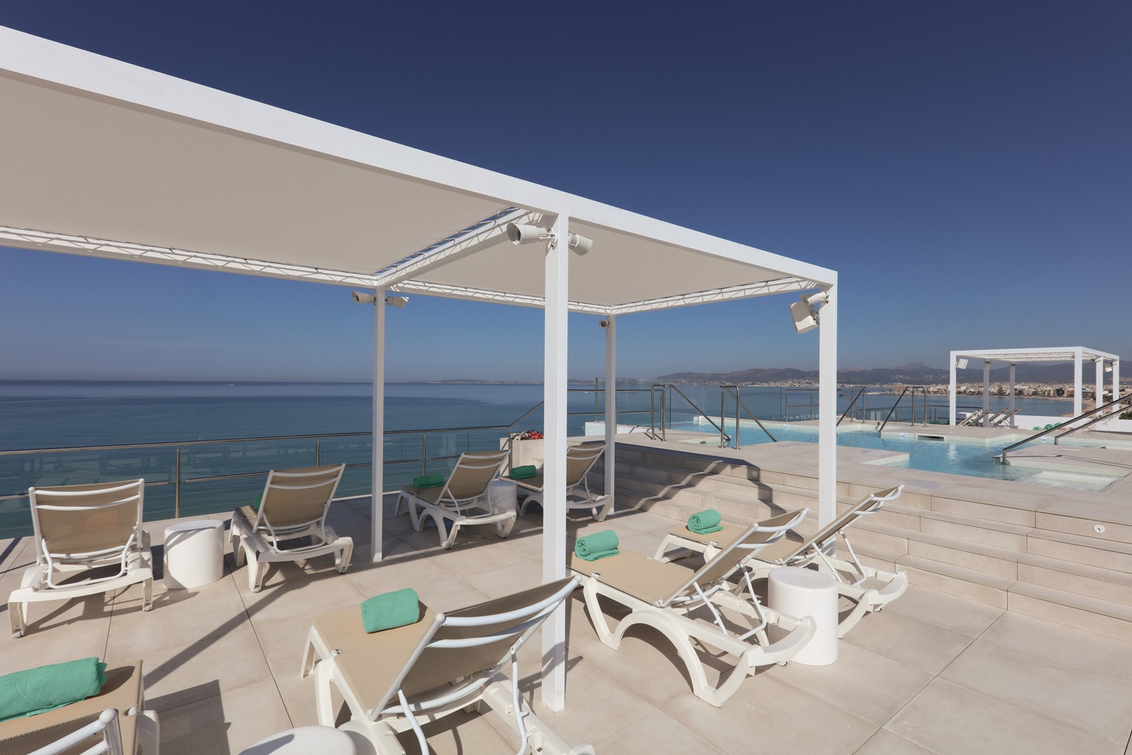 terrasse sur le toit avec piscine infinity d'eau de mer