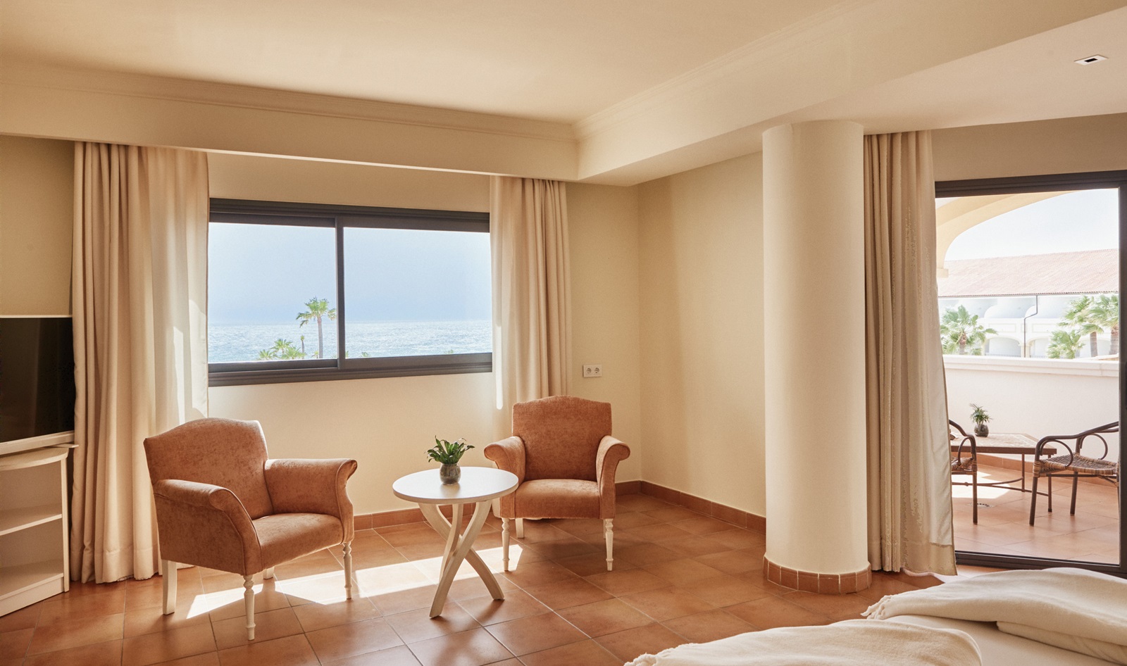 beachfront suite vue mer (51 m²) avec salon et chambre à coucher séparés et mieux située avec terrasse spacieuse avec vue mer frontale