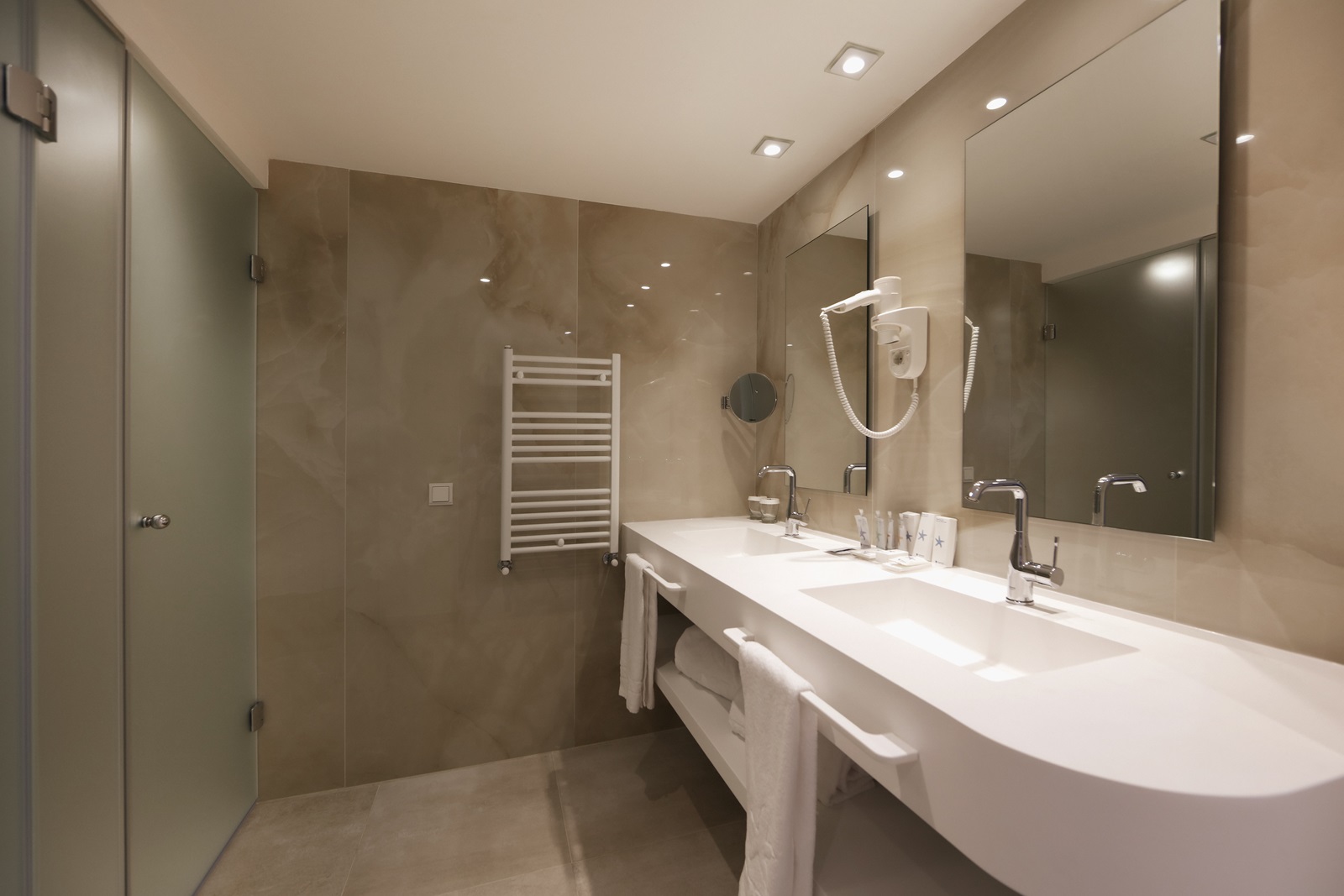 toutes les chambres disposent d'une douche, sèche-cheveux, téléphone, TV satellite, climatisation, chauffage, wifi premium, minibar (€), coffre-fort, balcon