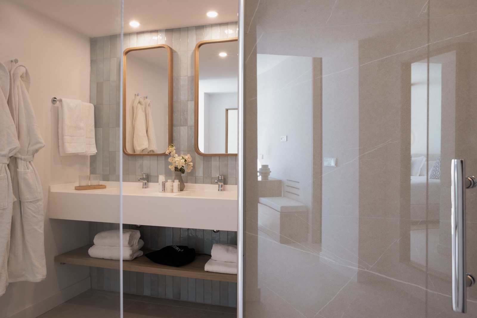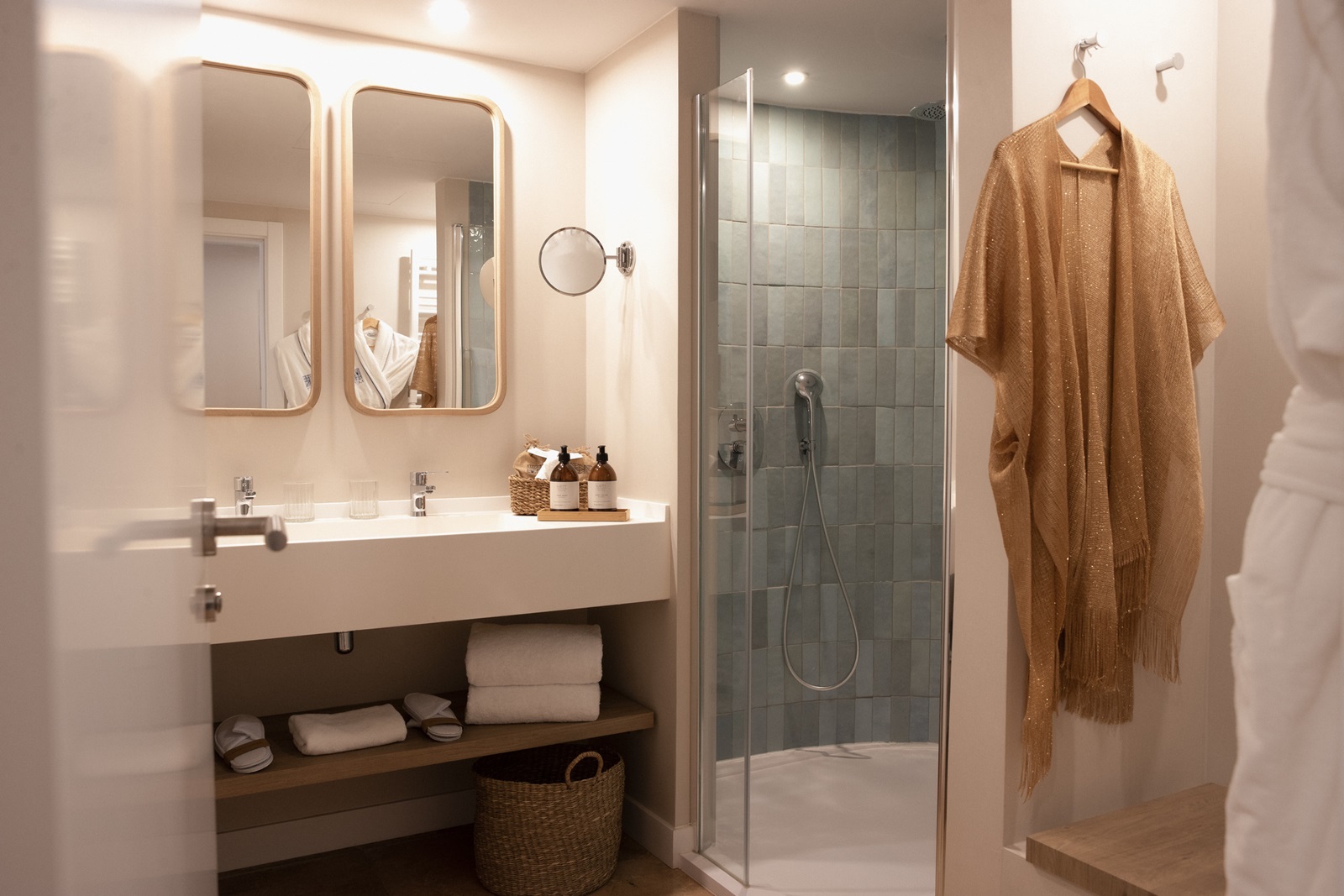 toutes les chambres très contemporaines et élégantes aux accents andalous disposent d'une belle salle de bain (douche à l'italienne, sèche-cheveux), machine Nespresso®, climatisation, coffre-fort, télévision à écran plat, wifi (gratuit), minibar (€) et balcon ou terrasse