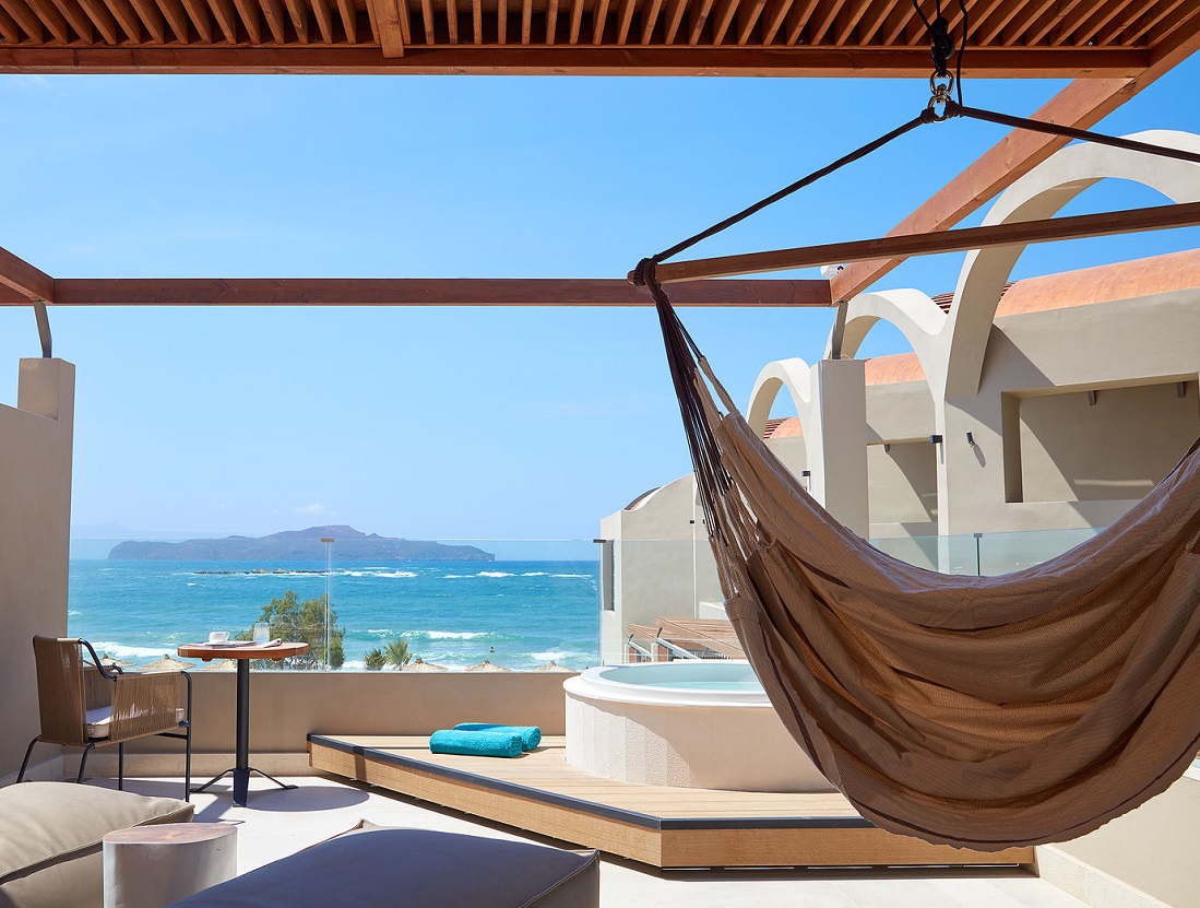 Ce luxueux complexe adults only propose d'excellents services et se situe à deux kilomètres de Chania, au bord de l'Agioi Apostoloi, l’une des plages les plus connues de la région. Installez-vous confortablement dans les coussins géants sur la terrasse, dans le jardin. Admirez l'architecture épurée et les couleurs chaleureuses des bâtiments. Les suites sont toutes équipées de hautes fenêtres et de meubles en bois tendance. Elles offrent une vue inoubliable sur la mer. Et pour que tout soit réellement parfait, un lit vous attend sur votre terrasse. Les restaurants proposent des spécialités crétoises, agrémentées d’une touche moderne. Décoré de mosaïques, le spa vous enchantera également.