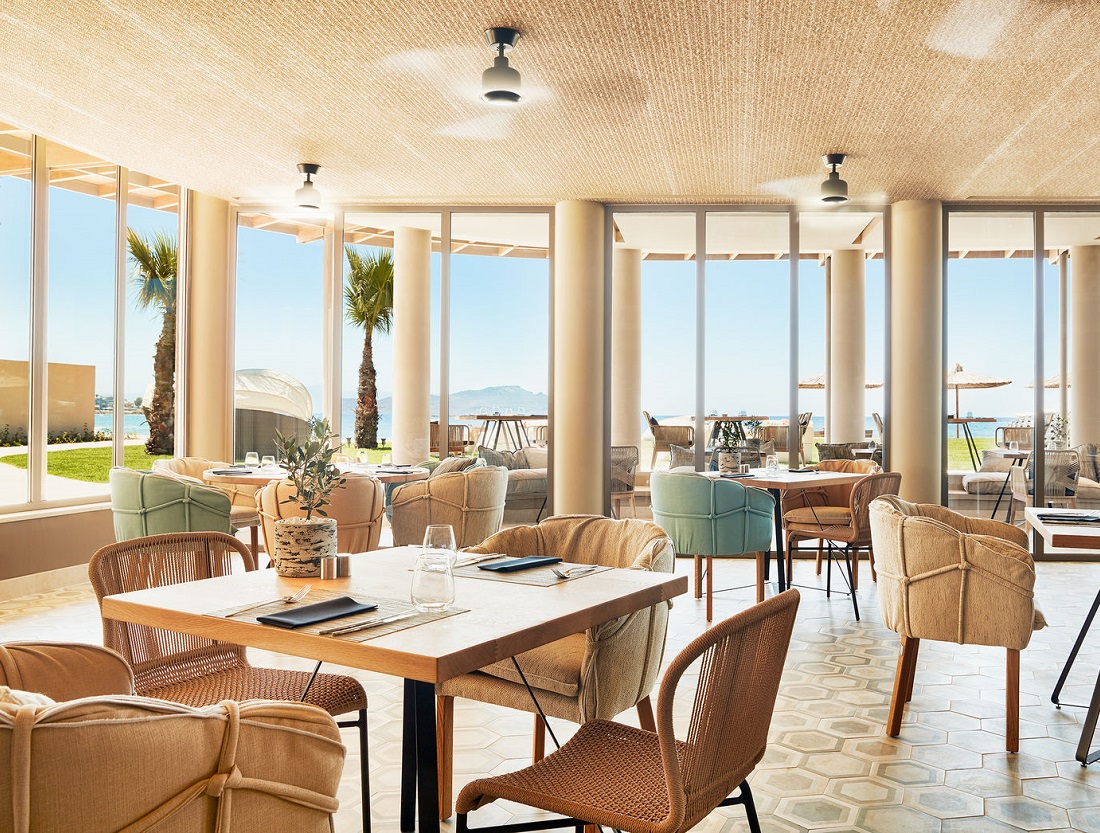 restaurant à la carte ‘Topos Restaurant’ proposant une cuisine moderne et innovante avec des spécialités grecques et internationales (déjeuner et dîner)