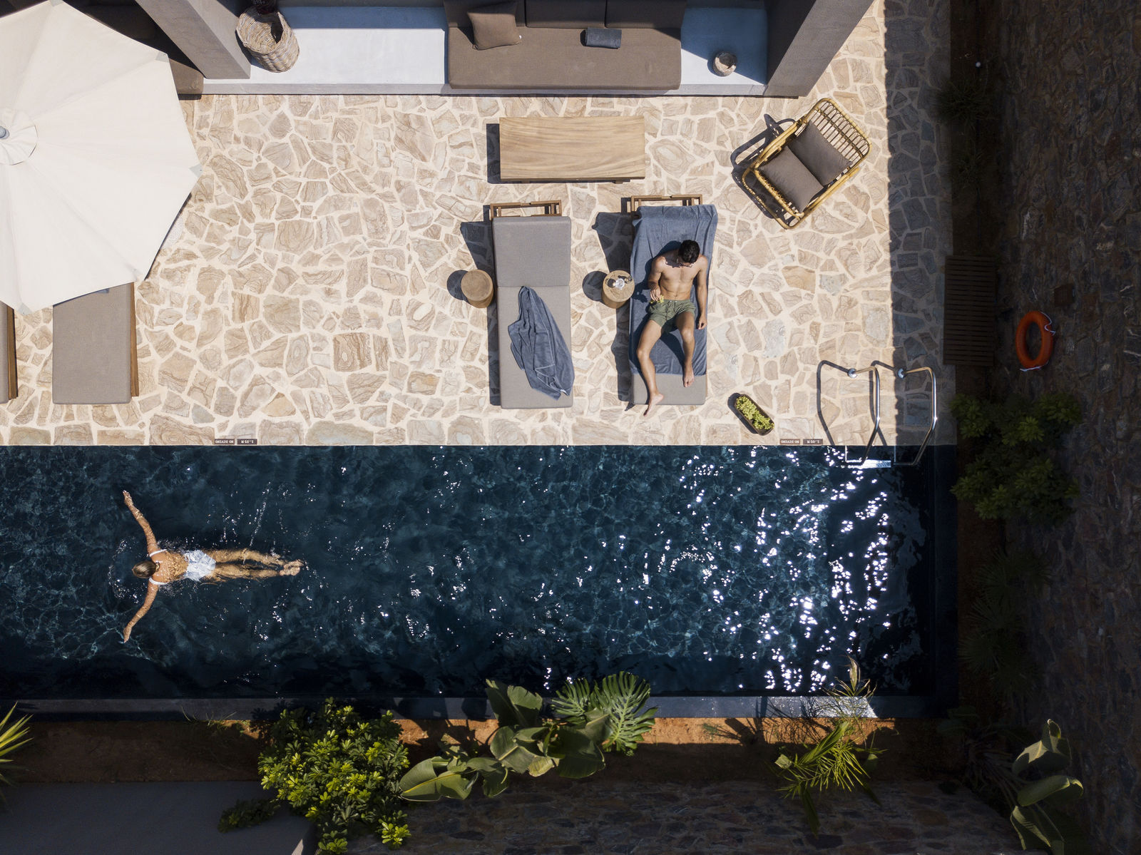 Pavillon Saphir Piscine privée (46 m²) avec salon ouvert (avec canapé-lit) et grande terrasse avec piscine privée (10-12 m²) et vue mer