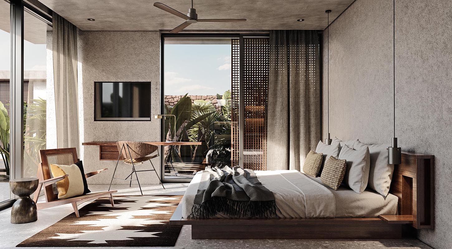 toutes les chambres de style boho chic naturel disposent d'une salle de bain (douche, sèche-cheveux), climatisation, téléphone, minibar (€), coffre-fort, wifi (gratuit), télévision à écran plat et balcon ou terrasse