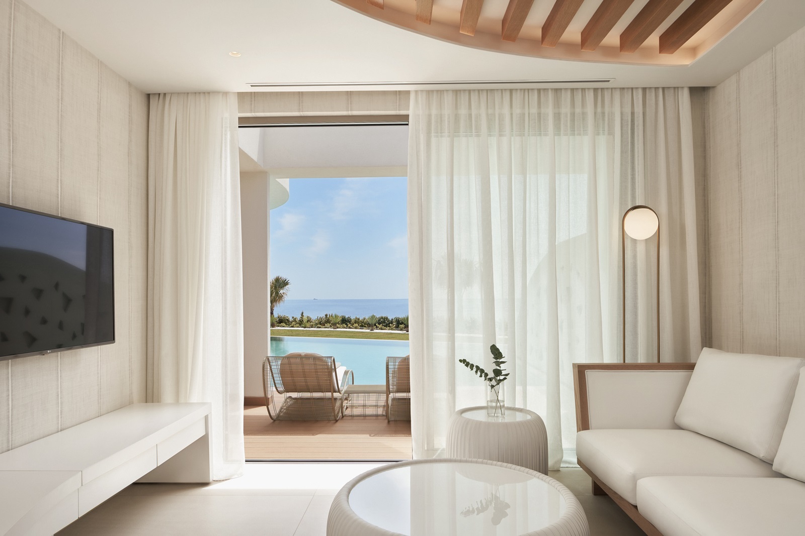 suites junior swim-up (38 m²) dans l'annexe avec vue mer et accès direct à une piscine commune