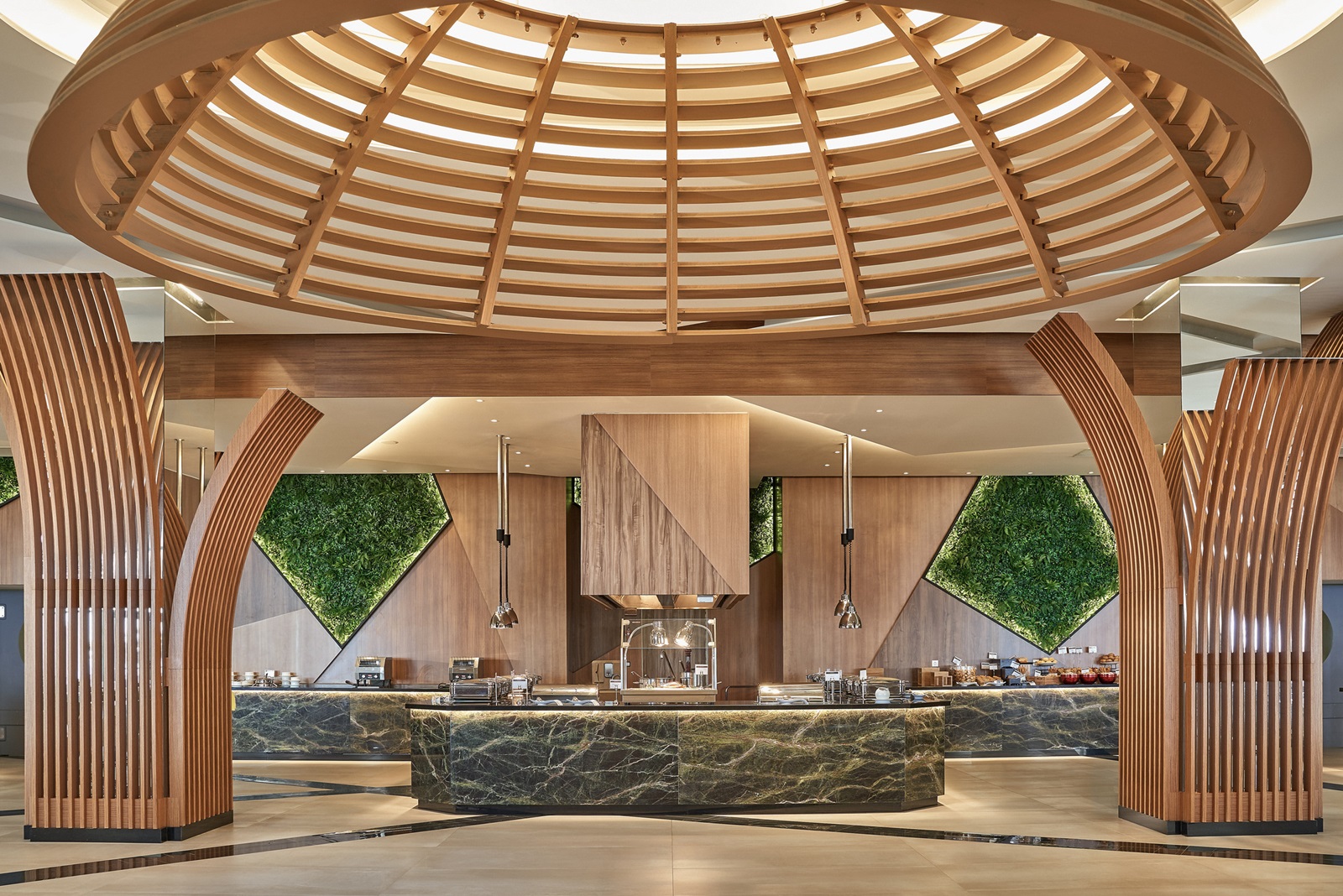 buffet petit-déjeuner, déjeuner et dîner dans le restaurant principal Waterfront, avec des soirées à thème