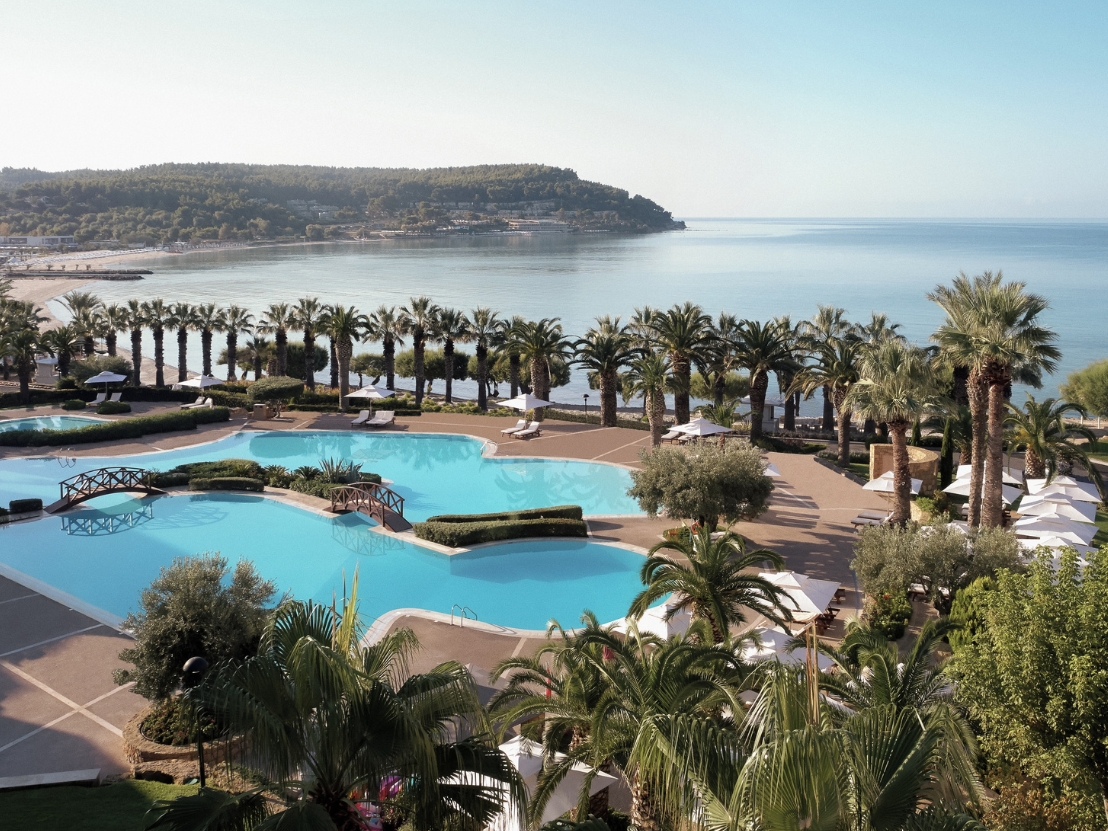 à Sani Resort: domaine avec 5 hôtels (Sani Beach, Sani Club, Sani Dunes, Porto Sani et Sani Asterias) et Sani Marina (navette sur le domaine)