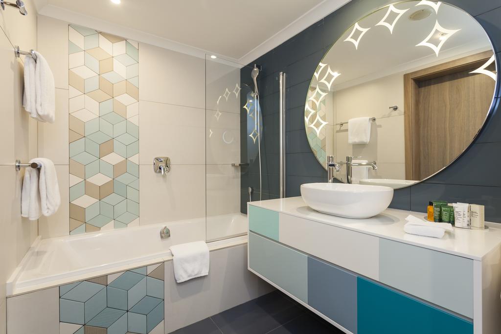 toutes les chambres disposent d'une bain, sèche-cheveux, sortie de bain, téléphone, TV, wifi, minibar (€), coffre-fort, coin salon, carrelage, chauffage, climatisation, percolateur à café et à thé, balcon avec vue jardin