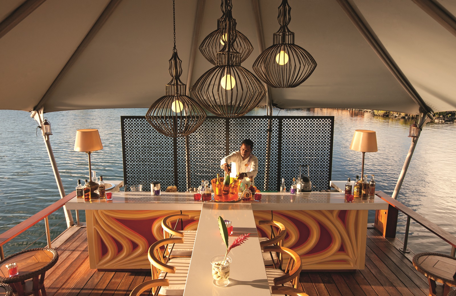 L'hôtel Constance Le Prince Maurice est membre des célèbres 'Leading Hotels of the World'. Les bâtiments s'intègrent harmonieusement dans un paradis subtropical de 60 hectares. Ce cadre époustouflant invite à faire entre autres du kitesurf, du kayak et du ski nautique. Les suites se trouvent e.a. sur des pilotis dans l'eau et donnent sur une mangrove, une plage de sable privée et un lagon abrité. Vous êtes d'humeur romantique? Dînez au "Barachois", un restaurant flottant en totale harmonie avec la beauté naturelle du domaine.