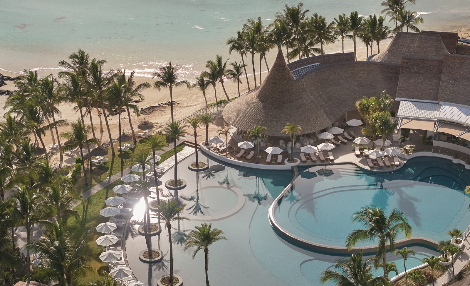 Situé au bord d'une large plage de sable blanc, entouré d'une barrière de corail et d'un magnifique lagon, cet hôtel de style colonial LUX* Belle Mare fait rêver. Profitez autour de l’une des plus grandes piscines de l’île, faites-vous dorloter au LUX*Me Spa ou encore pratiquer de nombreux sports comme le yoga et le tai chi. Vous avez le choix entre 4 délicieux restaurants qui répondent également aux besoins des végétariens et des végétaliens grâce au programme ‘Keen on Green’. Le décor typiquement mauricien contemporaine, avec des chambres habillées de tons blancs apaisants et de couleurs vives, complète le tableau.