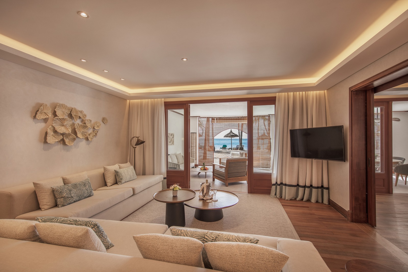 senior suite beachfront (147 m²), salon séparé, sol en bois, situé au rez-de-chaussée ou au 1er étage, vue mer