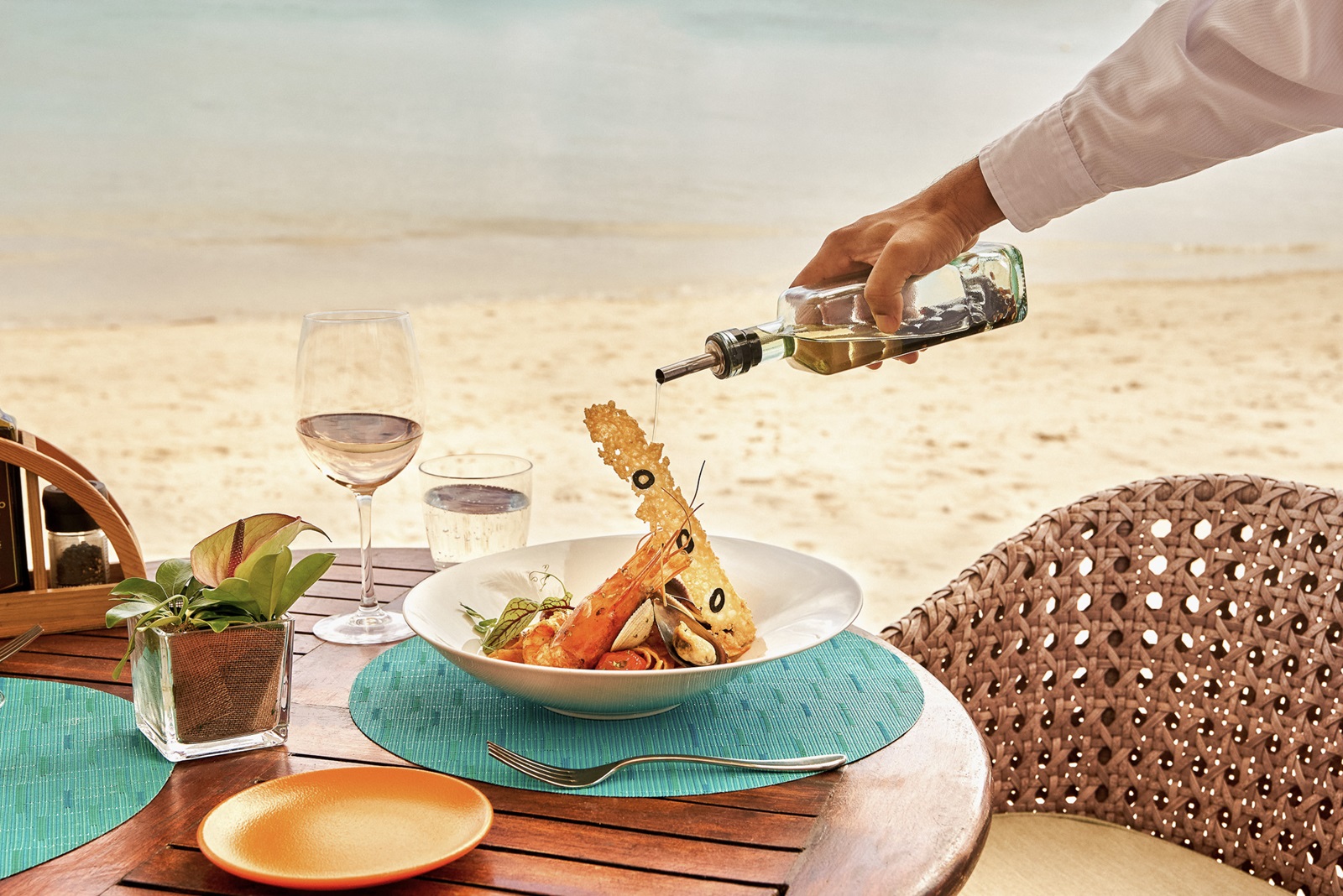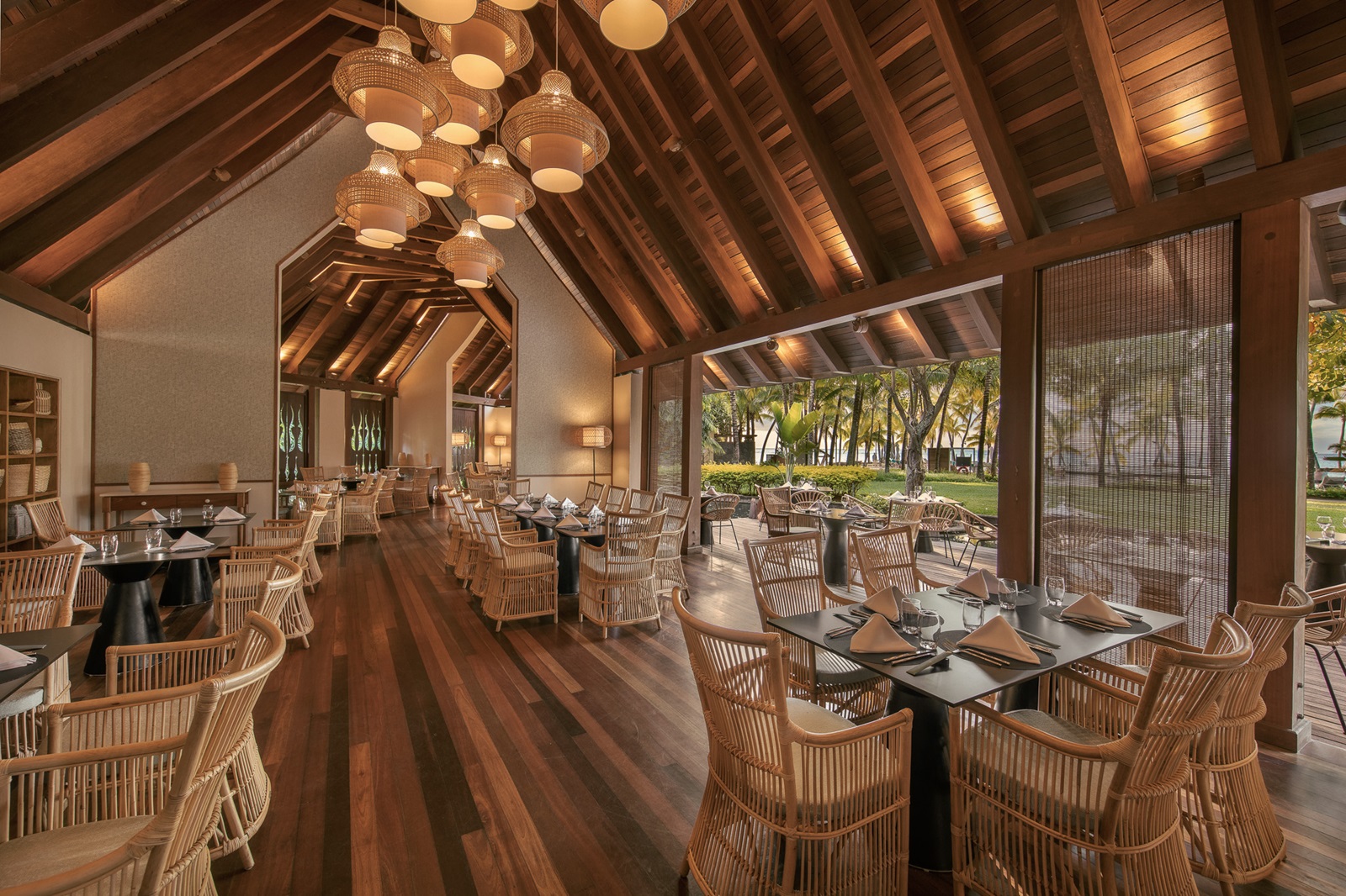 5 restaurants à la carte : 'La Caravelle' (petit déjeuner, déjeuner et dîner, saveurs Mauriciennes), 'Il Corallo' (dîner Italien), 'La Plage' (déjeuner et dîner), 'Blue Ginger' (dîner, cuisine fusion asiatique), 'Mahiya' (dîner, indien)